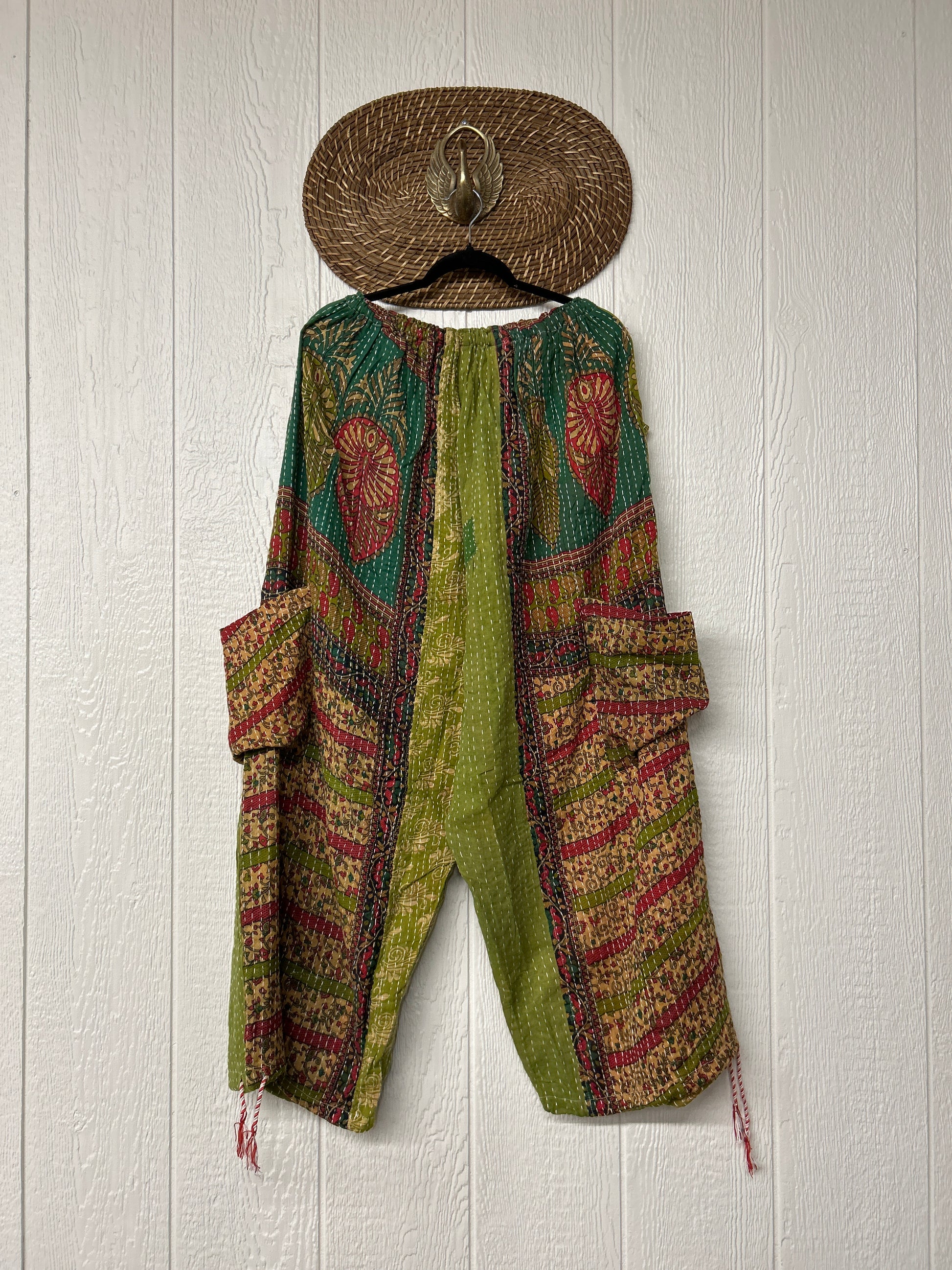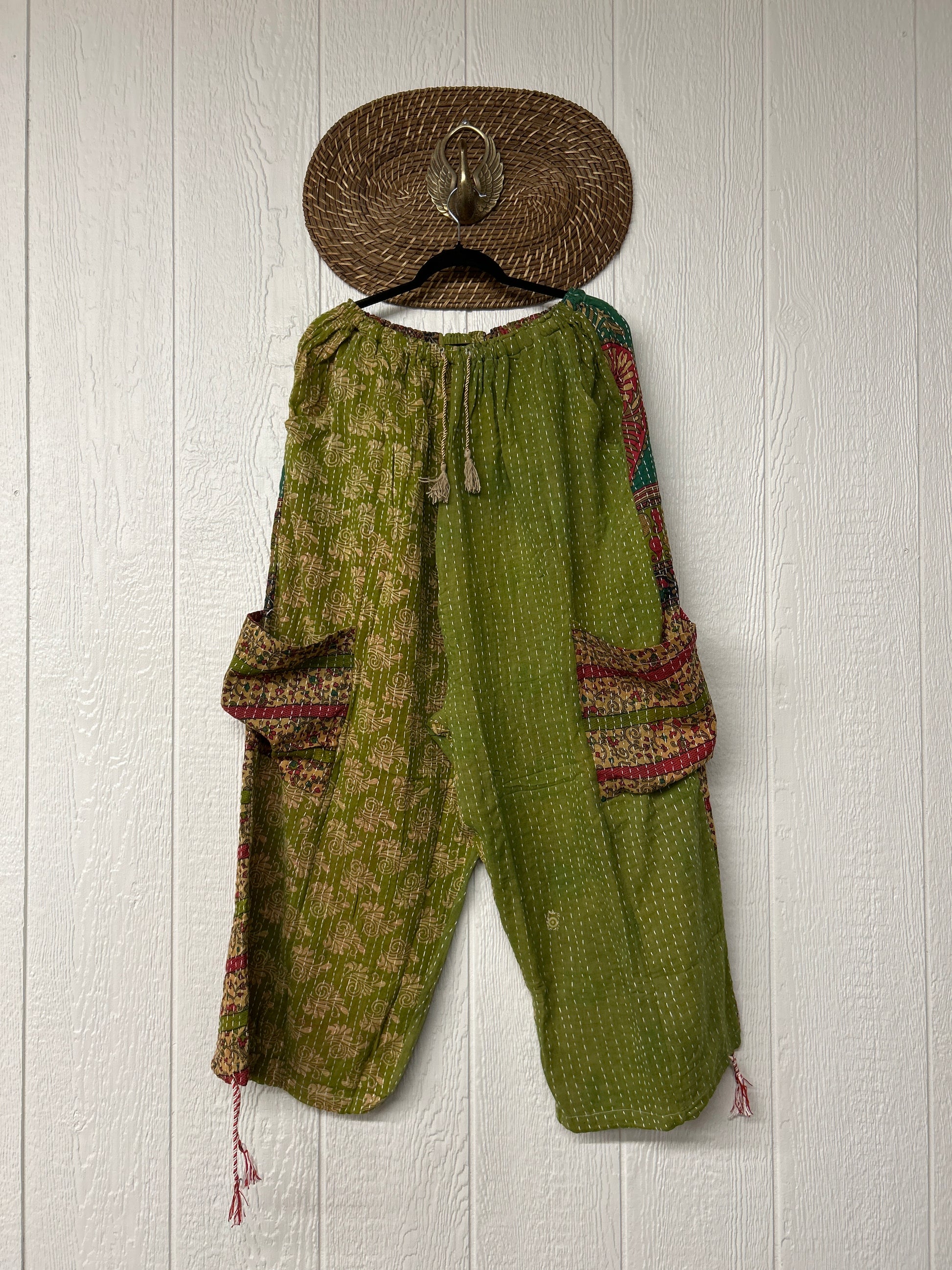 Made from our hand kantha stitched vintage cotton sari, the Karma Cargo Pants features super wide legs with deep side pockets and interior pockets.