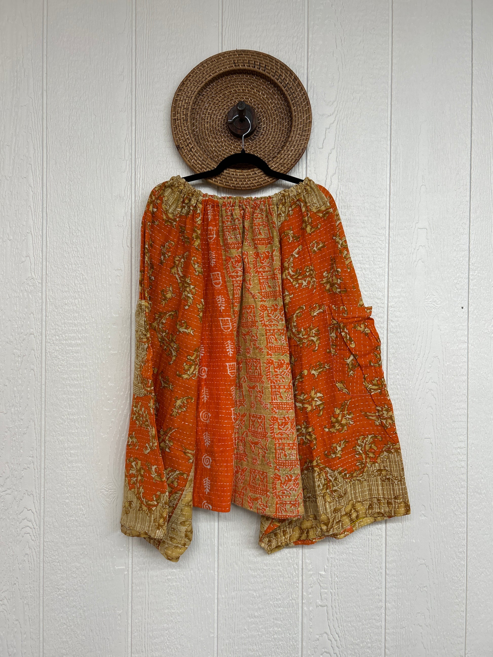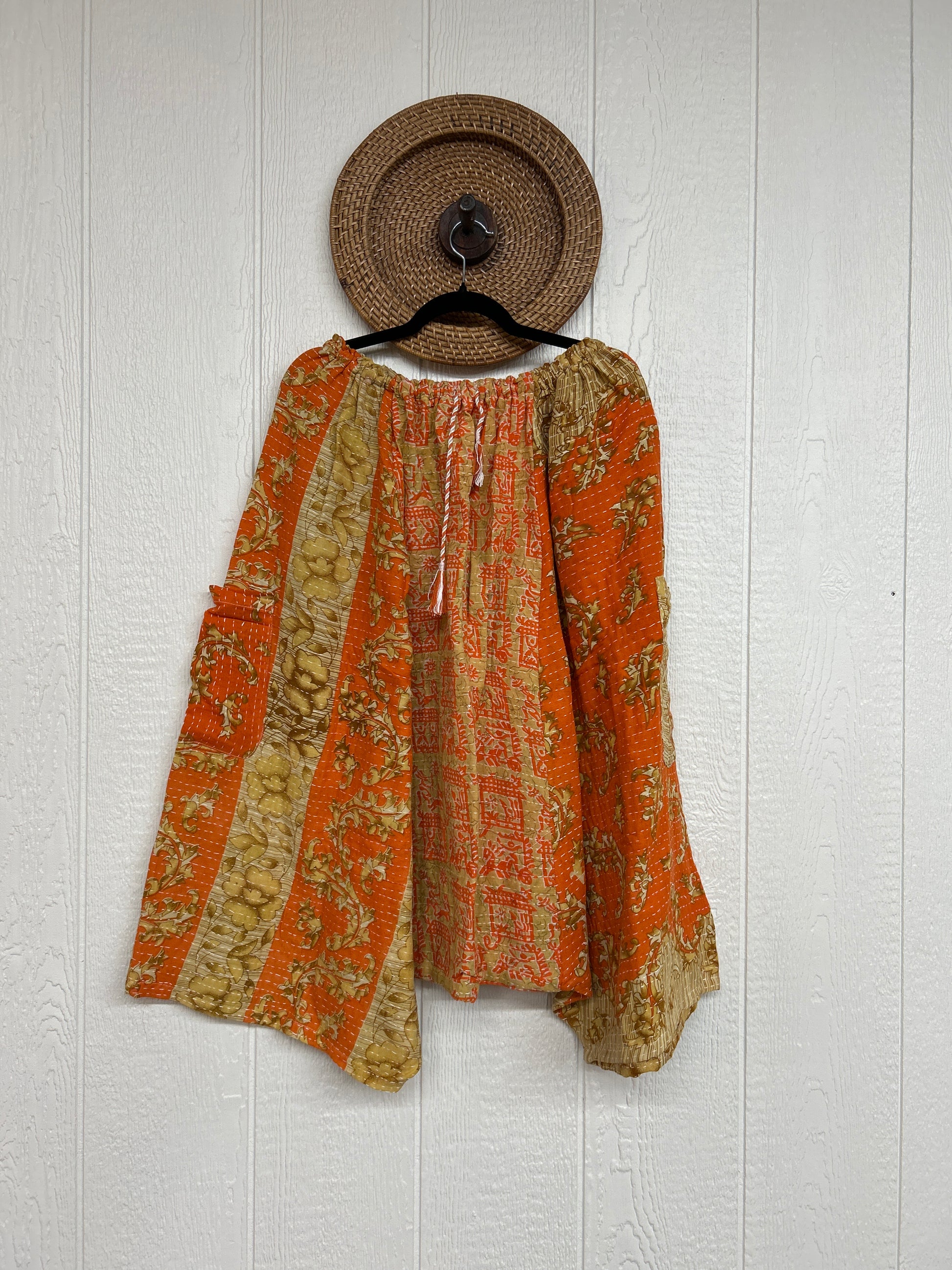 Fabrics may have small threads or holes in the layers. Color inconsistency or small stains may be present. The saris are sewn together and extend the life of each design. Imperfections should be celebrated.