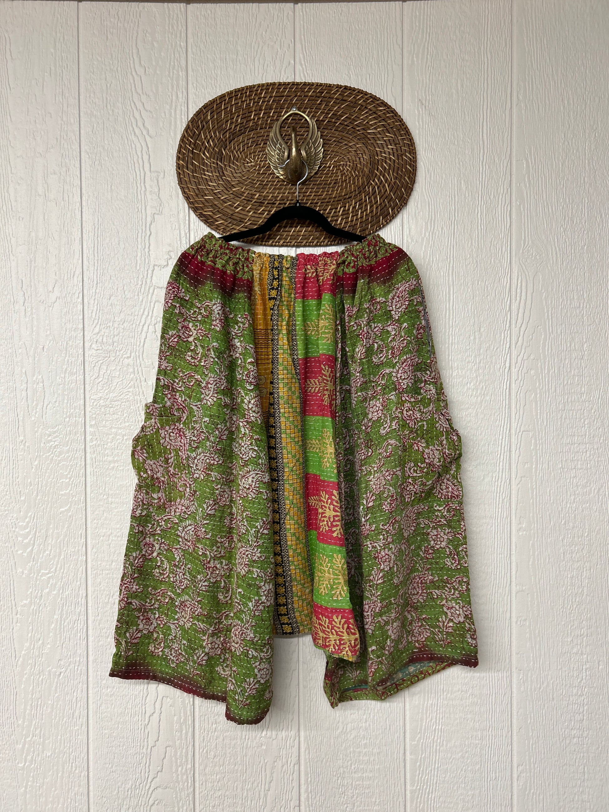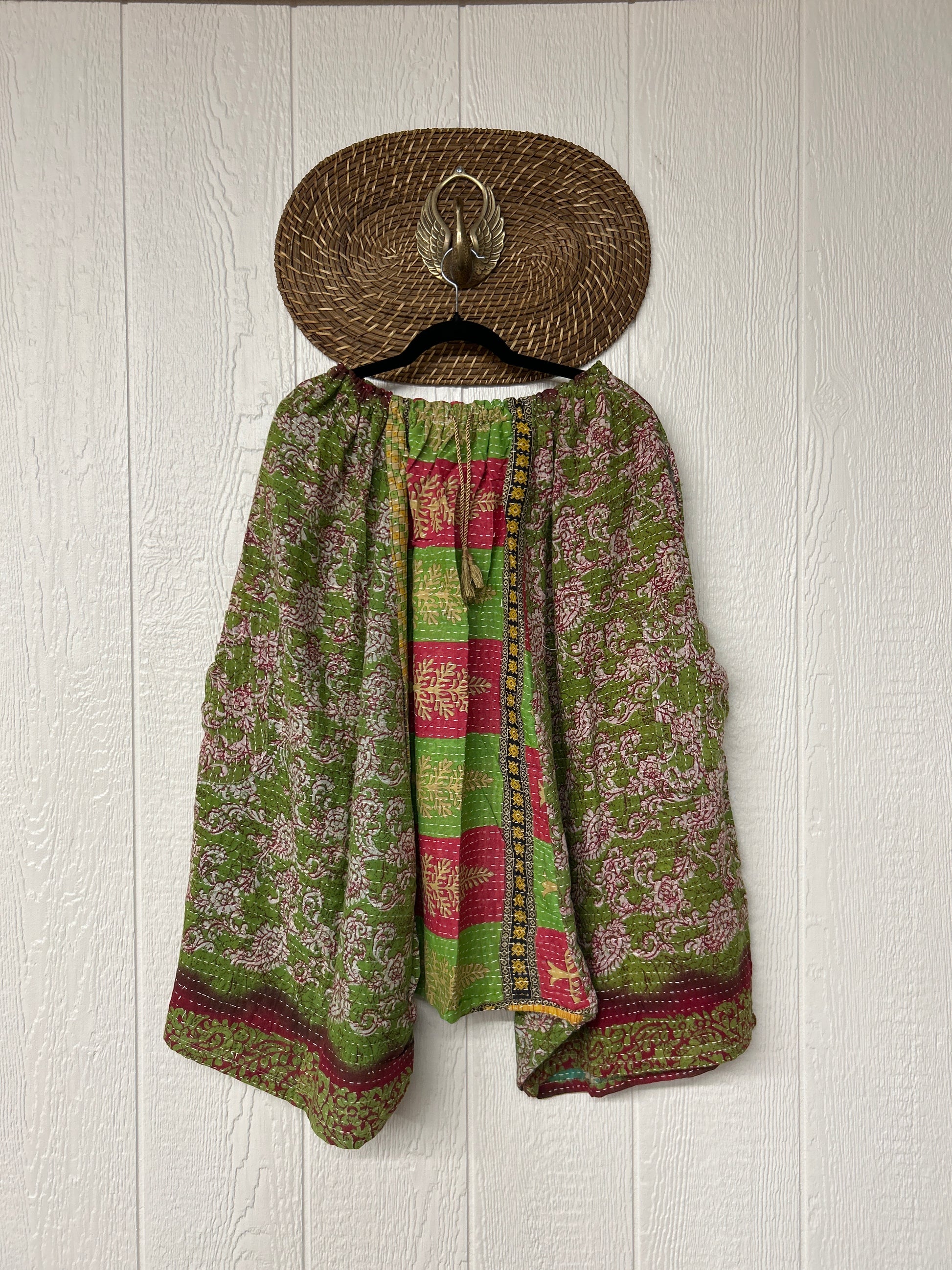 Fabrics may have small threads or holes in the layers. Color inconsistency or small stains may be present. The saris are sewn together and extend the life of each design. Imperfections should be celebrated.