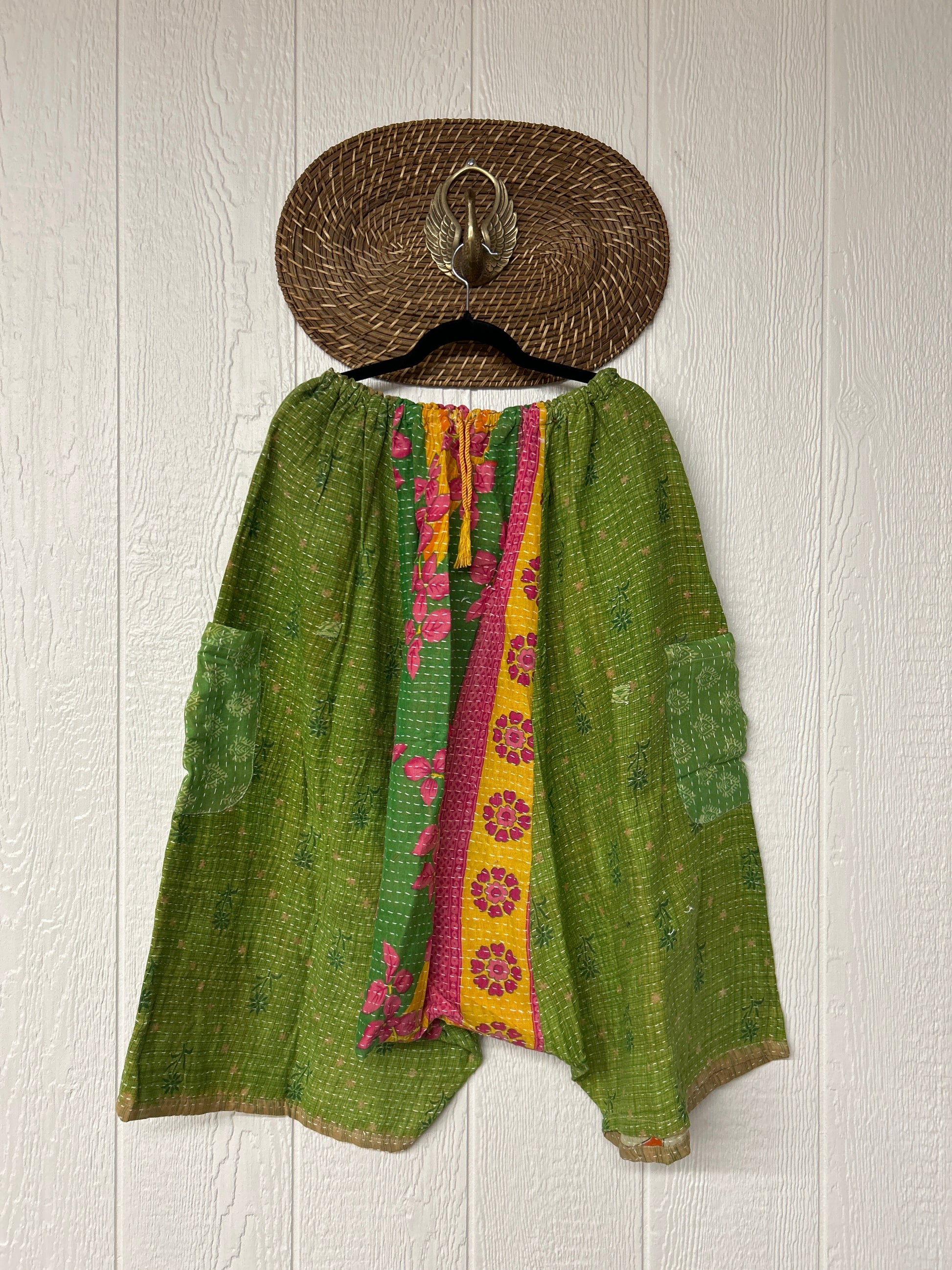 Fabrics may have small threads or holes in the layers. Color inconsistency or small stains may be present. The saris are sewn together and extend the life of each design. Imperfections should be celebrated.