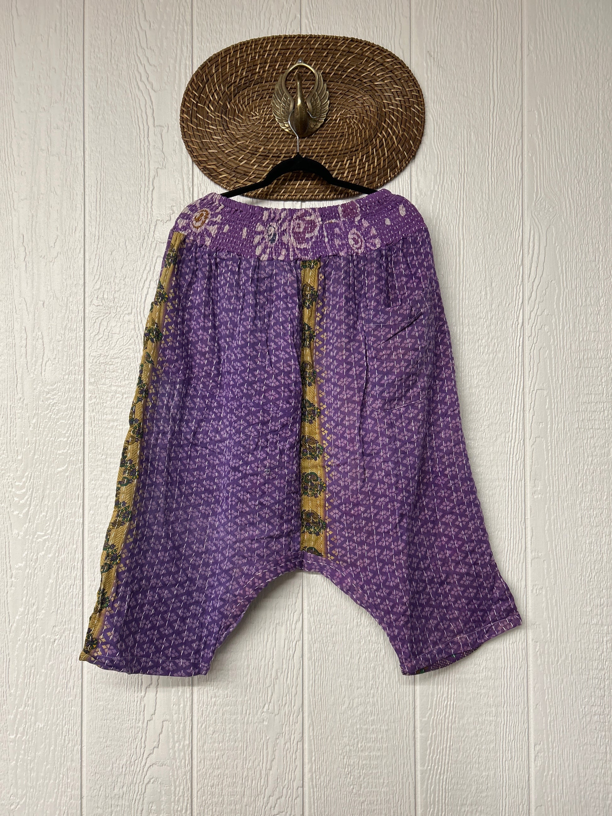 Crafted from our ultra lux embroidered vintage cotton sari coverlet these pants will make you want to dance. Features drop crotch, two front interior pockets, a back pocket and cropped length. These pants can be worn with either set of pockets to the front or back AND they are fully reversible. Yes, you can wear them 4 ways!