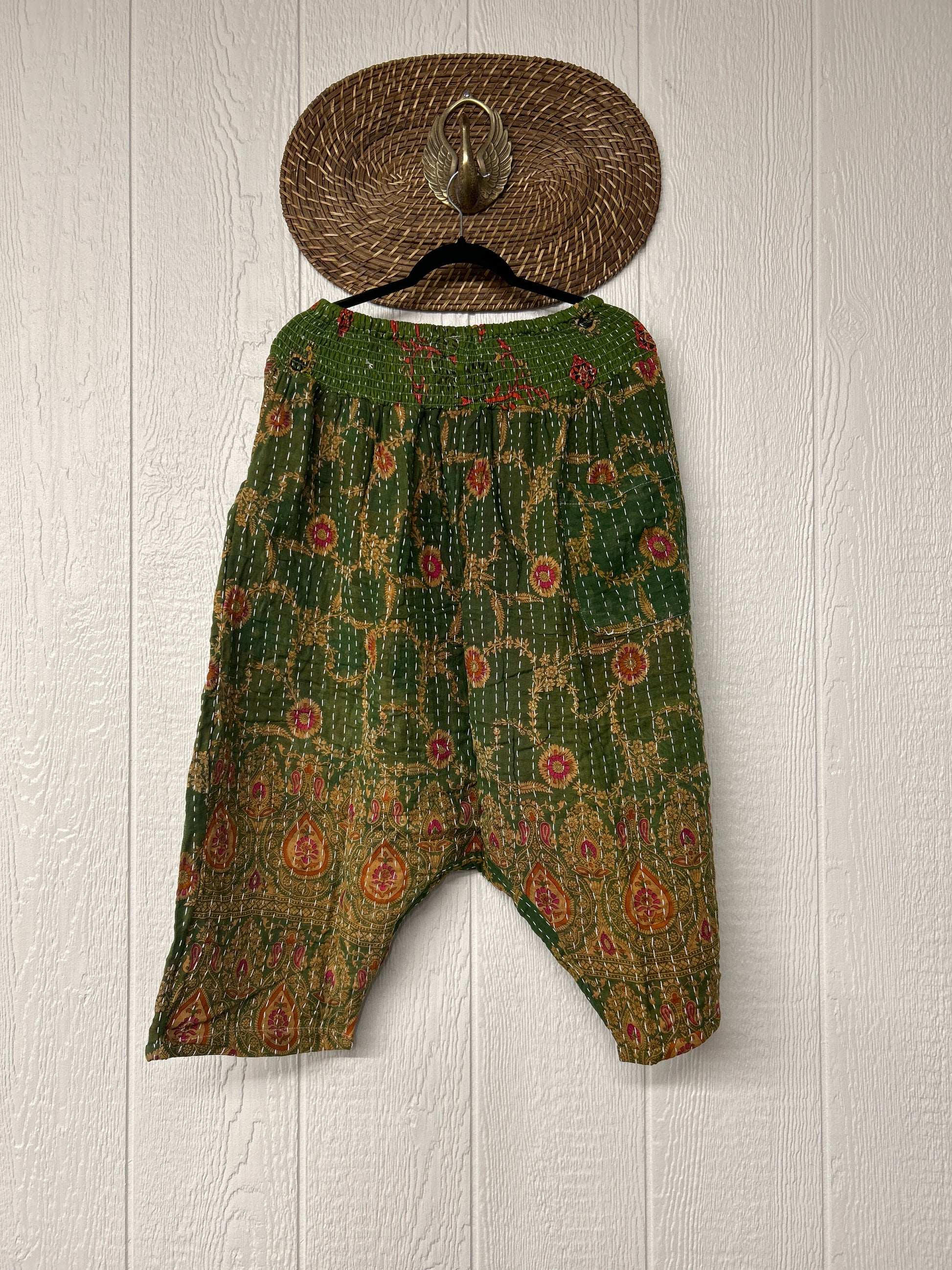 Crafted from our ultra lux embroidered vintage cotton sari coverlet these pants will make you want to dance. Features drop crotch, two front interior pockets, a back pocket and cropped length. These pants can be worn with either set of pockets to the front or back AND they are fully reversible. Yes, you can wear them 4 ways!