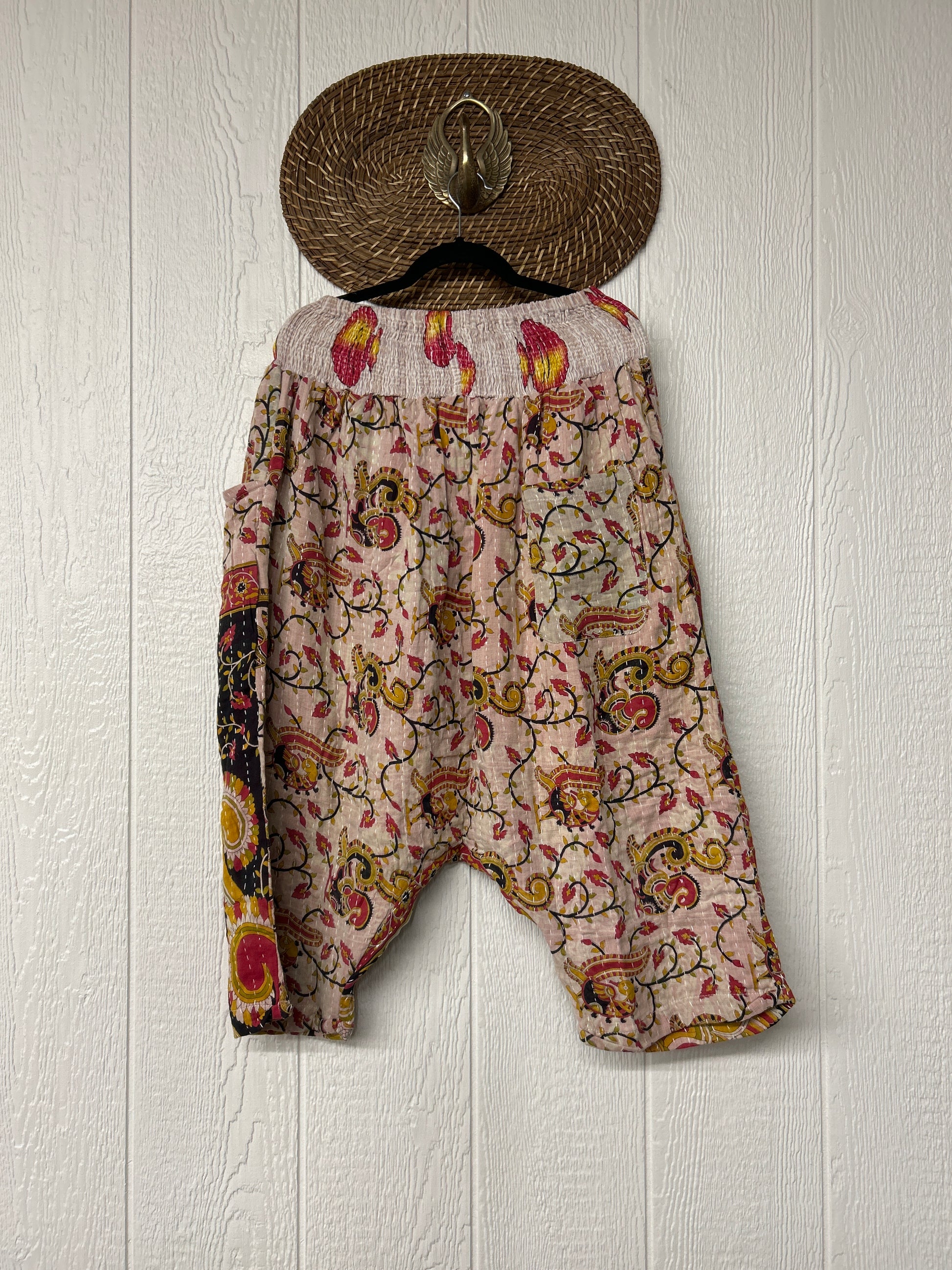 Crafted from our ultra lux embroidered vintage cotton sari coverlet these pants will make you want to dance. Features drop crotch, two front interior pockets, a back pocket and cropped length. These pants can be worn with either set of pockets to the front or back AND they are fully reversible. Yes, you can wear them 4 ways!