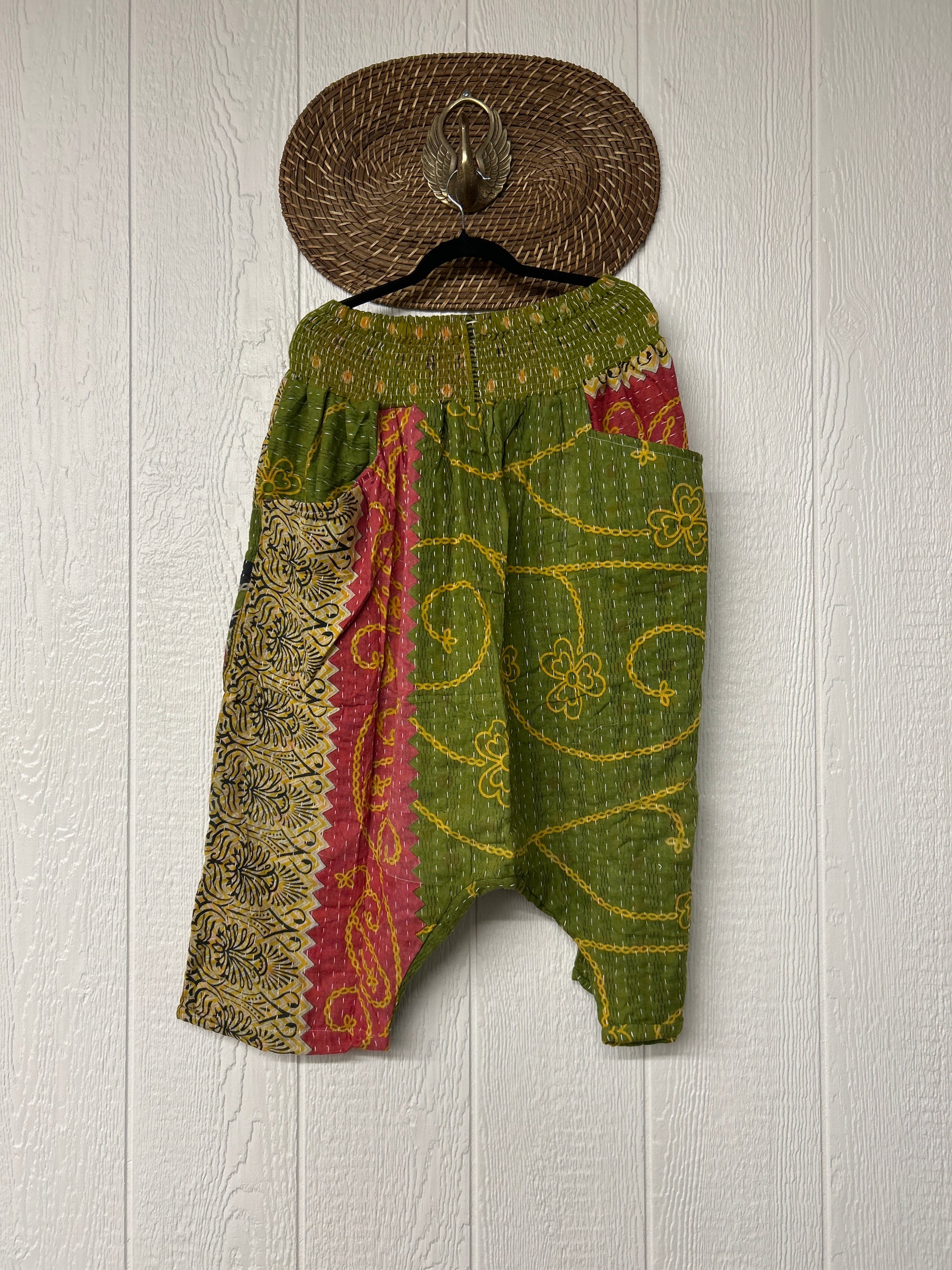 Crafted from our ultra lux embroidered vintage cotton sari coverlet these pants will make you want to dance. Features drop crotch, two front interior pockets, a back pocket and cropped length. These pants can be worn with either set of pockets to the front or back AND they are fully reversible. Yes, you can wear them 4 ways!