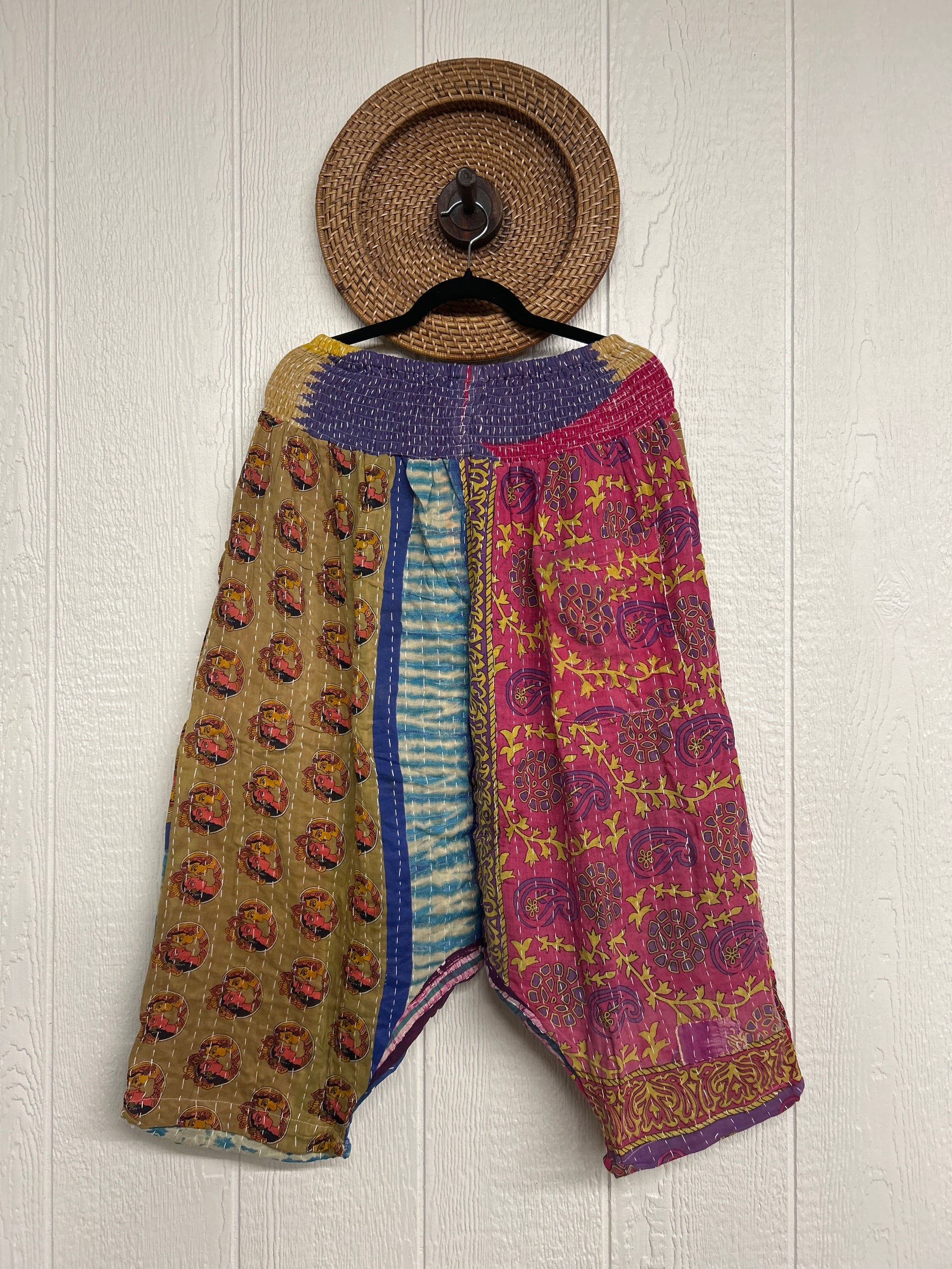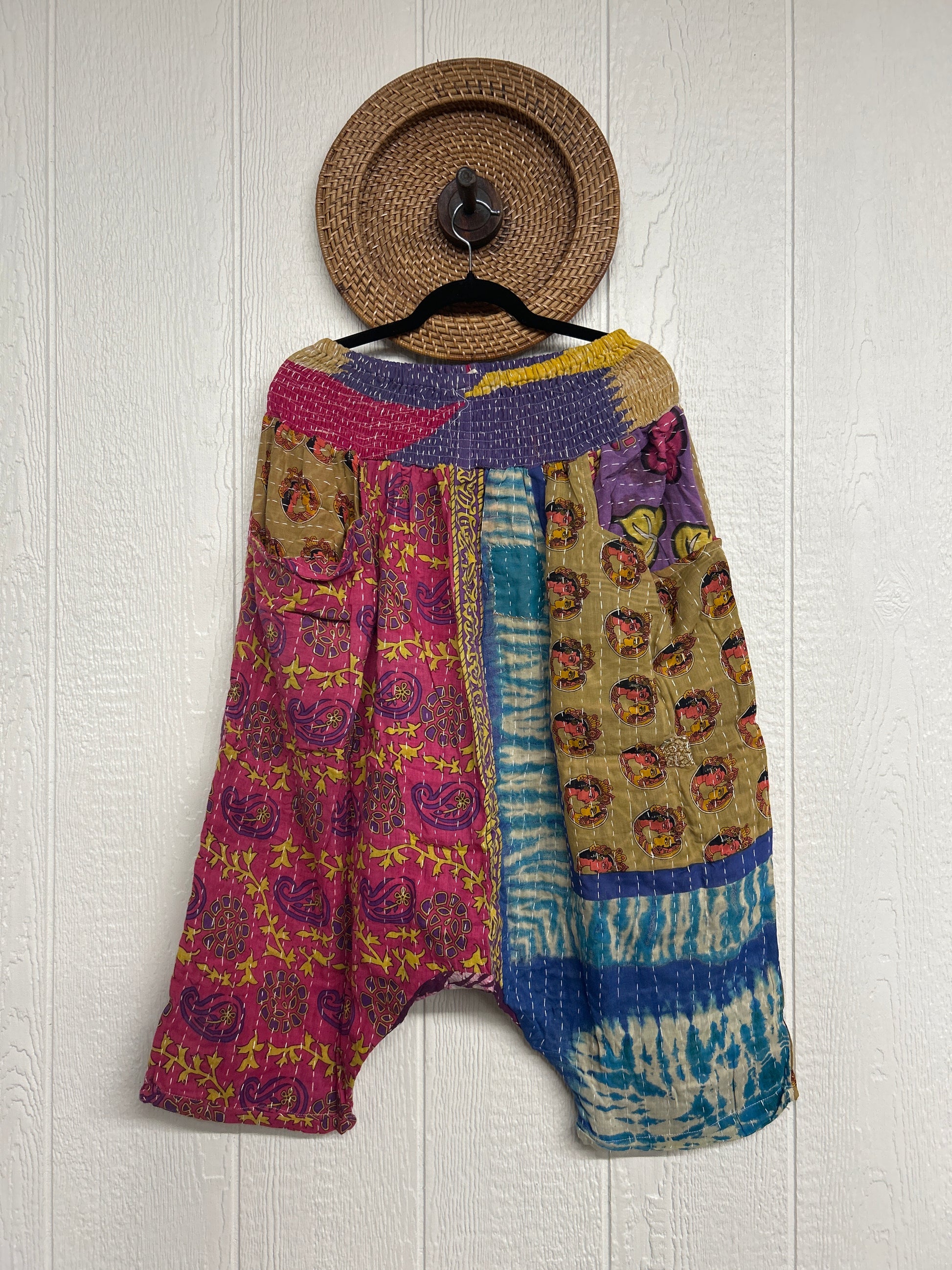 Crafted from our ultra lux embroidered vintage cotton sari coverlet these pants will make you want to dance. Features drop crotch, two front interior pockets, a back pocket and cropped length. These pants can be worn with either set of pockets to the front or back AND they are fully reversible. Yes, you can wear them 4 ways!