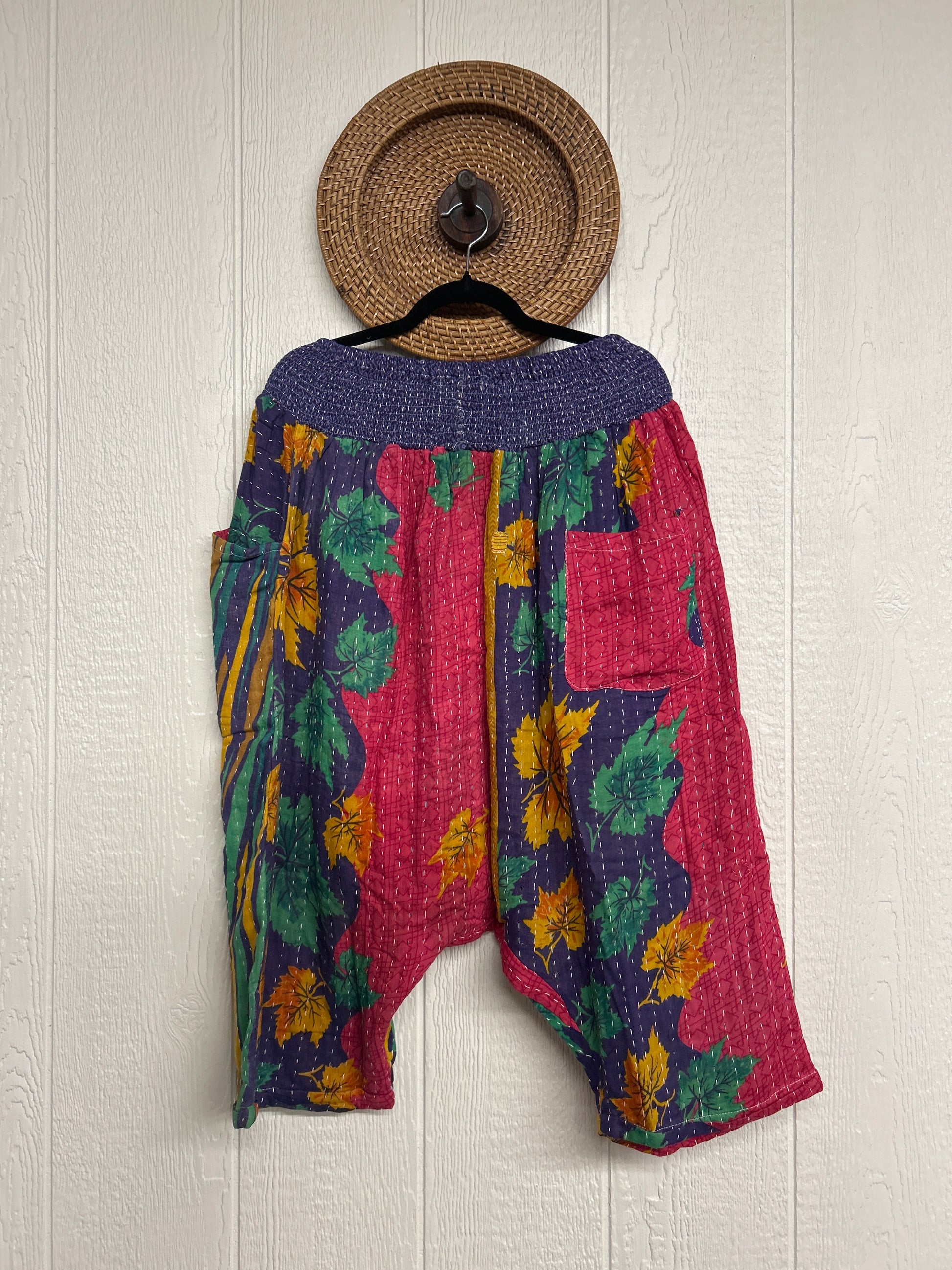 Crafted from our ultra lux embroidered vintage cotton sari coverlet these pants will make you want to dance. Features drop crotch, two front interior pockets, a back pocket and cropped length. These pants can be worn with either set of pockets to the front or back AND they are fully reversible. Yes, you can wear them 4 ways!
