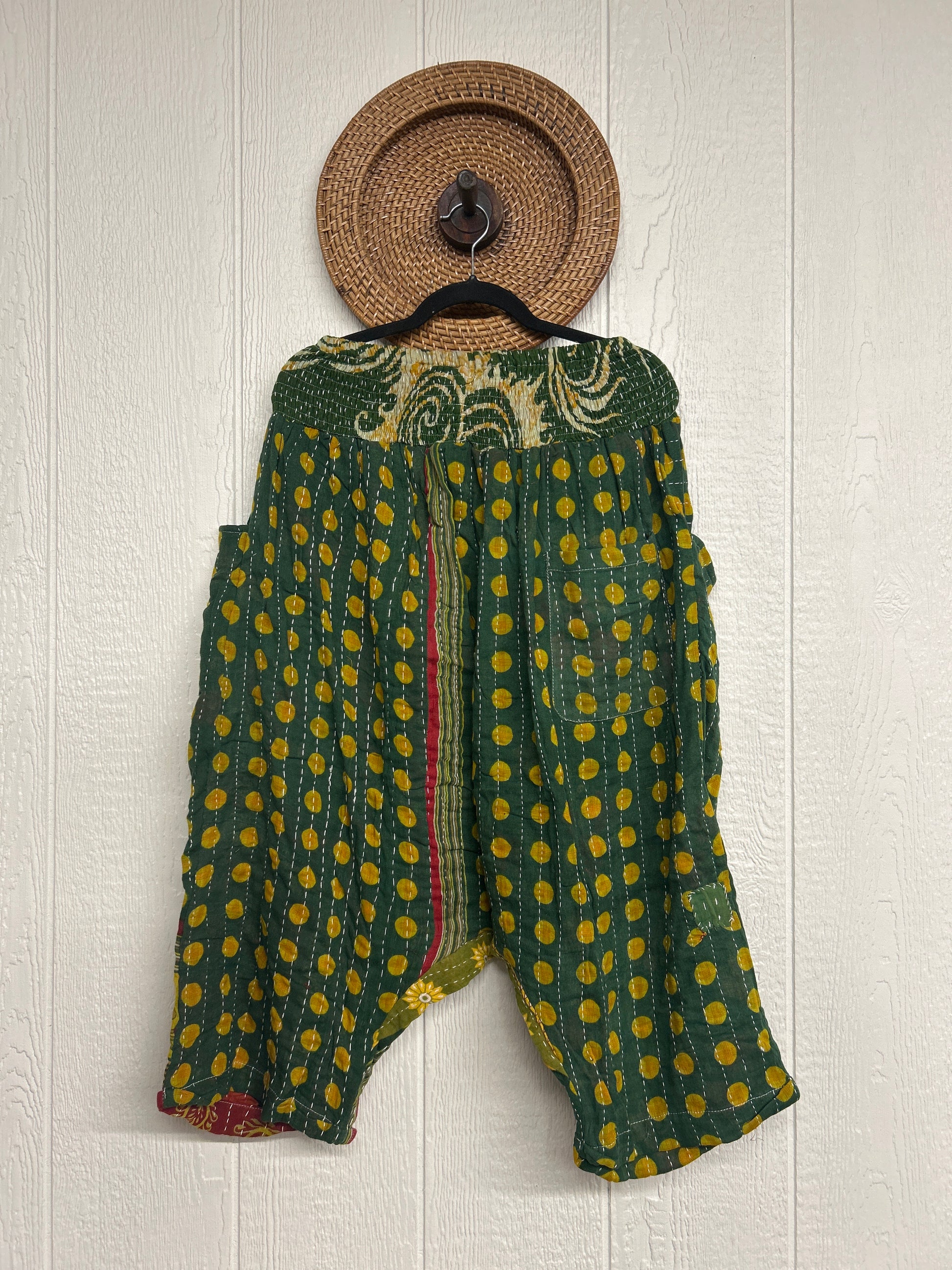 Crafted from our ultra lux embroidered vintage cotton sari coverlet these pants will make you want to dance. Features drop crotch, two front interior pockets, a back pocket and cropped length. These pants can be worn with either set of pockets to the front or back AND they are fully reversible. Yes, you can wear them 4 ways!
