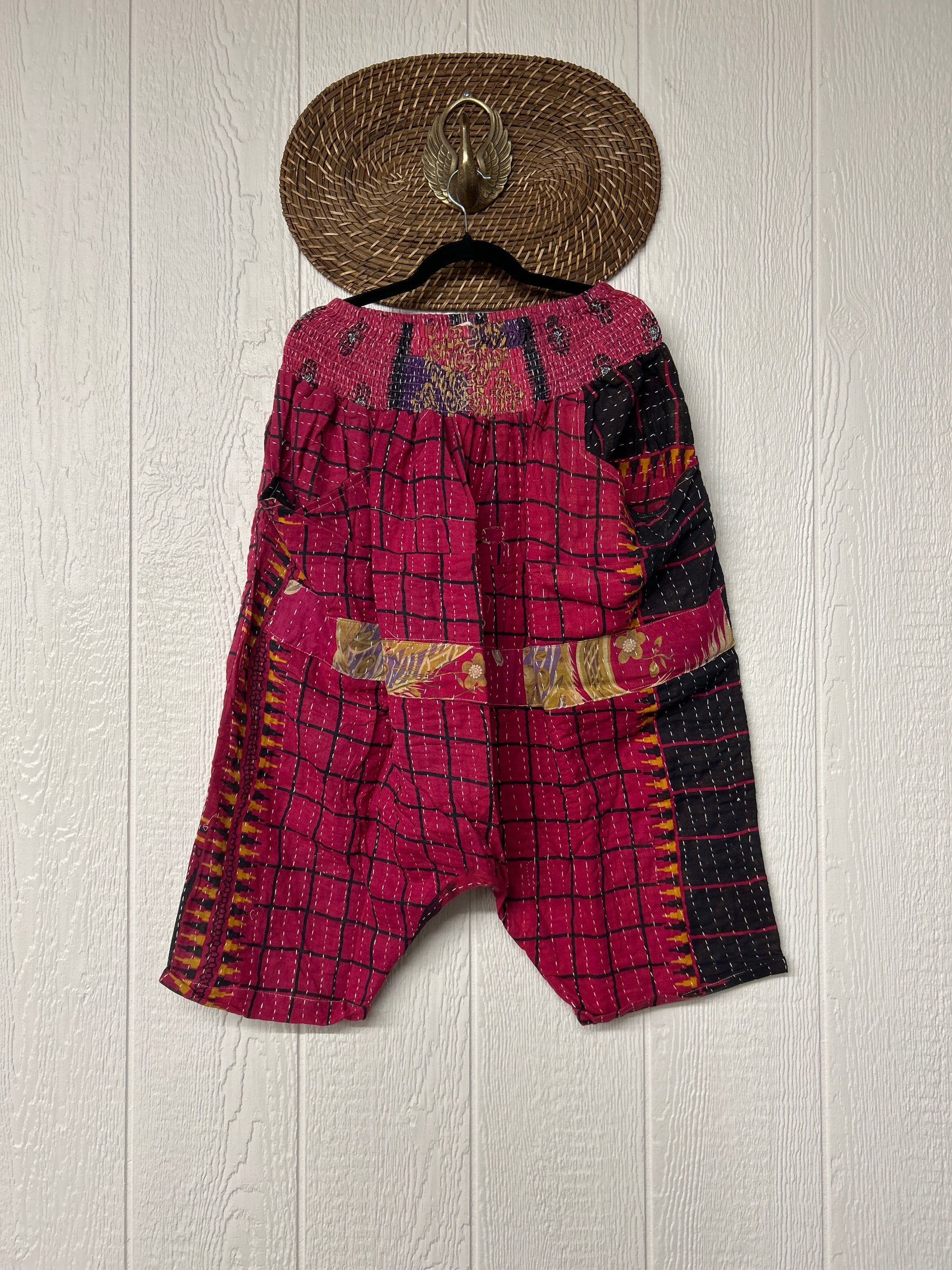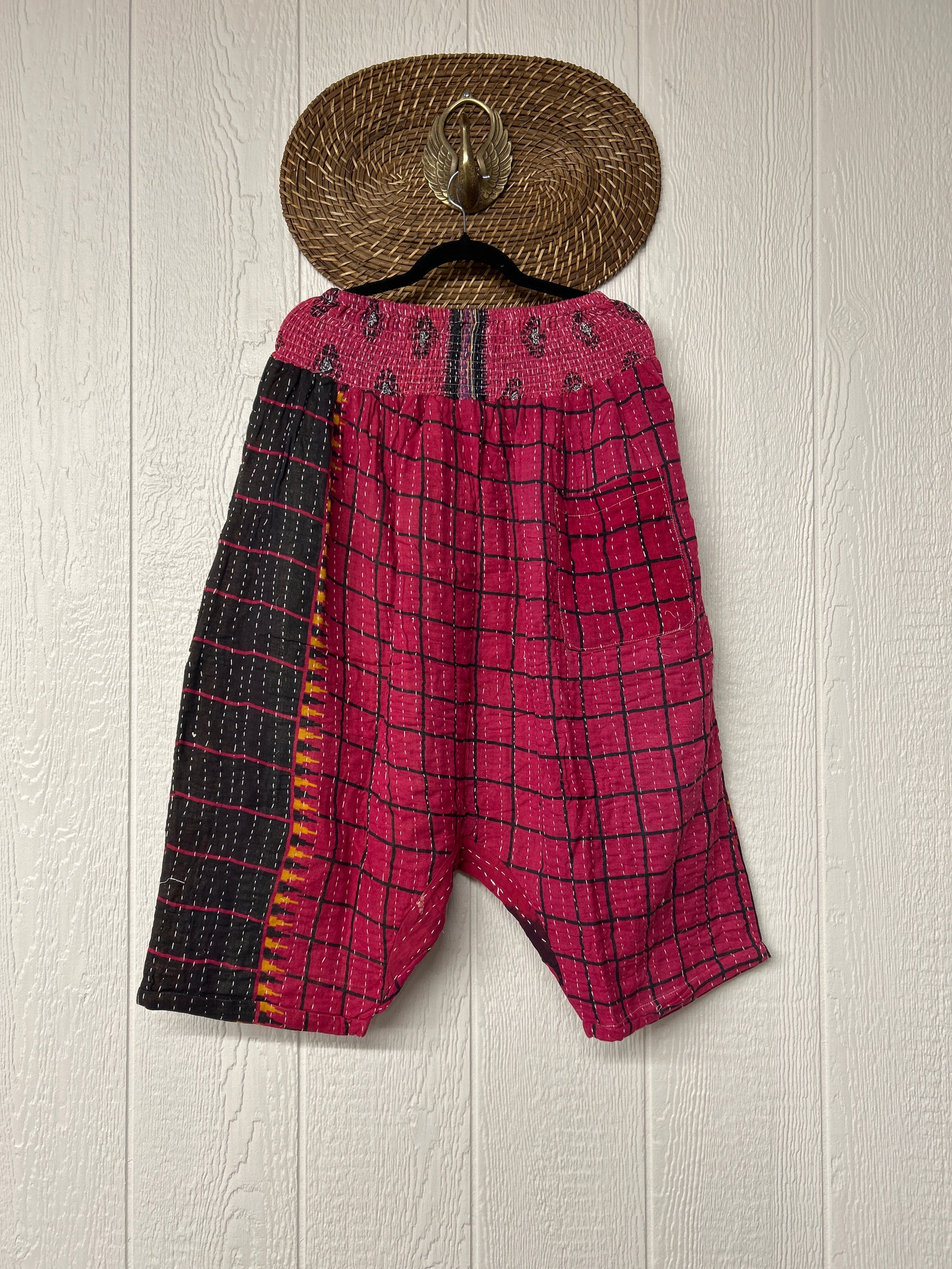 Crafted from our ultra lux embroidered vintage cotton sari coverlet these pants will make you want to dance. Features drop crotch, two front interior pockets, a back pocket and cropped length. These pants can be worn with either set of pockets to the front or back AND they are fully reversible. Yes, you can wear them 4 ways!