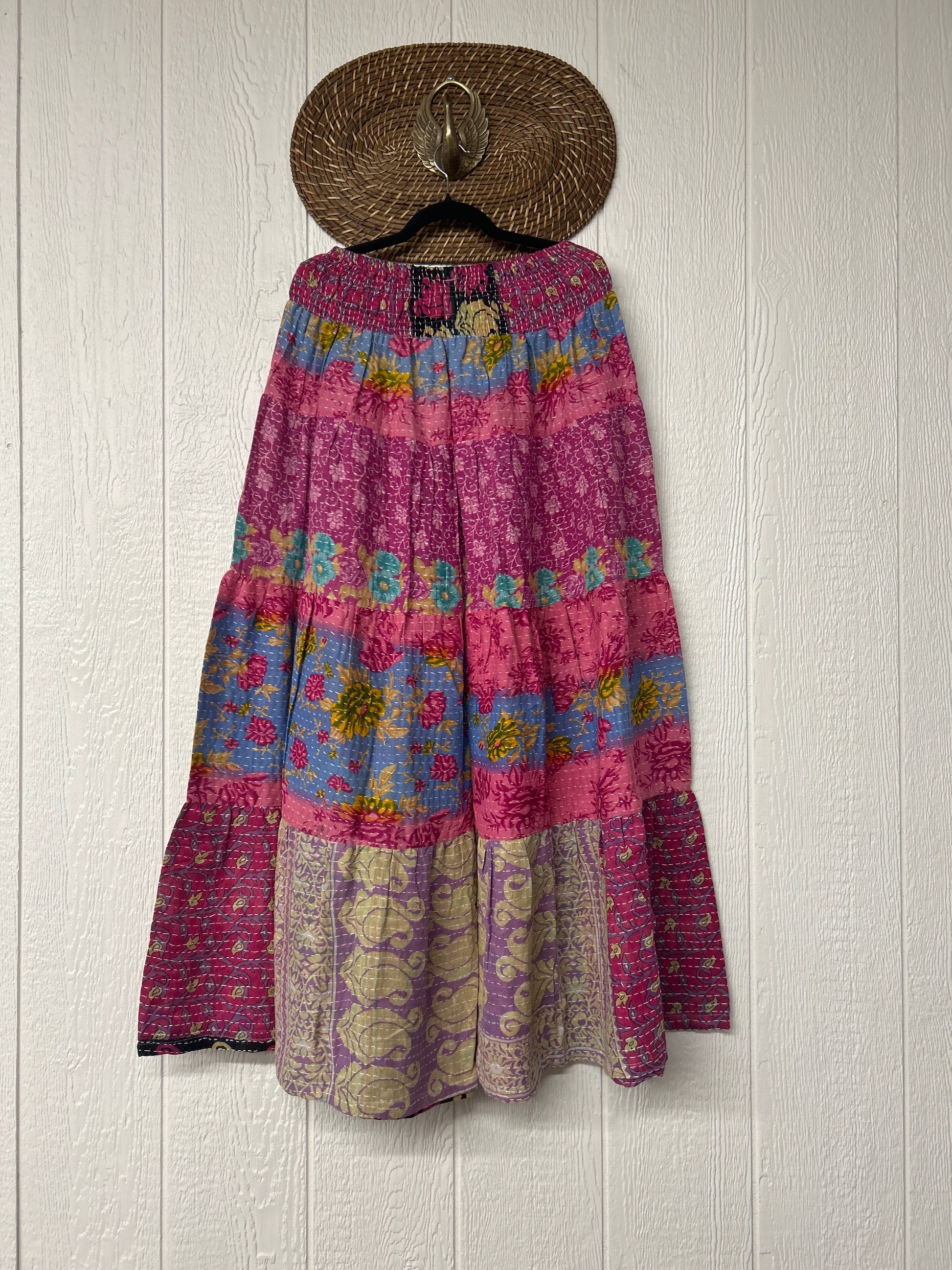 Crafted from our ultra lux Kantha stitched cotton sari, the bold design of the Lotus Wide Leg Pants features tiered wide legs for an exaggerated silhouette and a slouchy interior pocket that is absolute perfection!