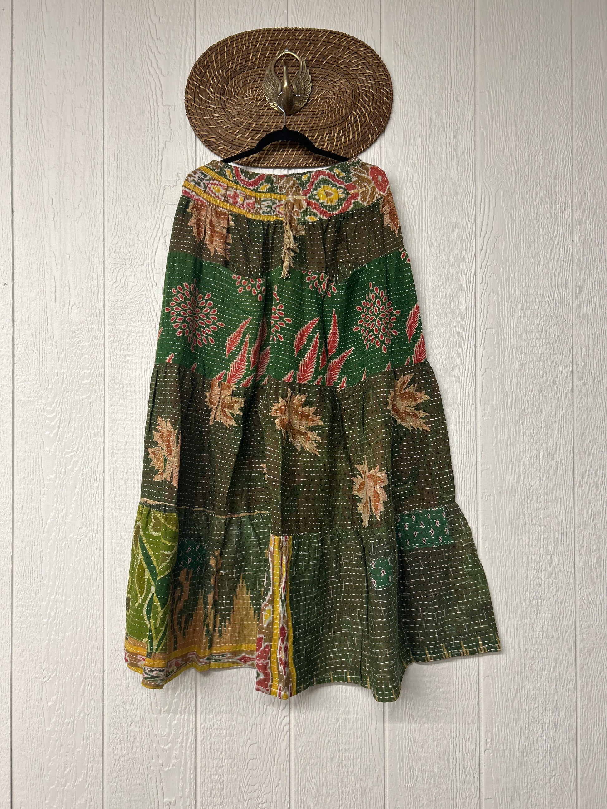 Crafted from our ultra lux Kantha stitched cotton sari, the bold design of the Lotus Wide Leg Pants features tiered wide legs for an exaggerated silhouette and a slouchy interior pocket that is absolute perfection!