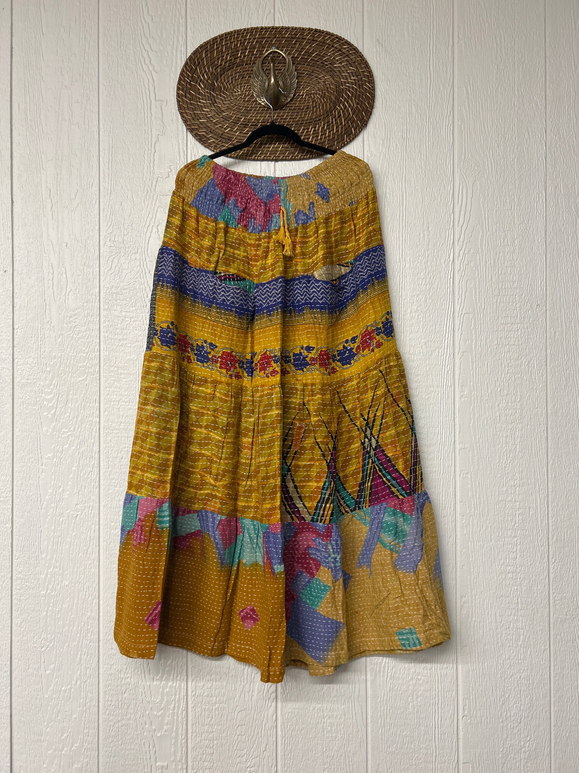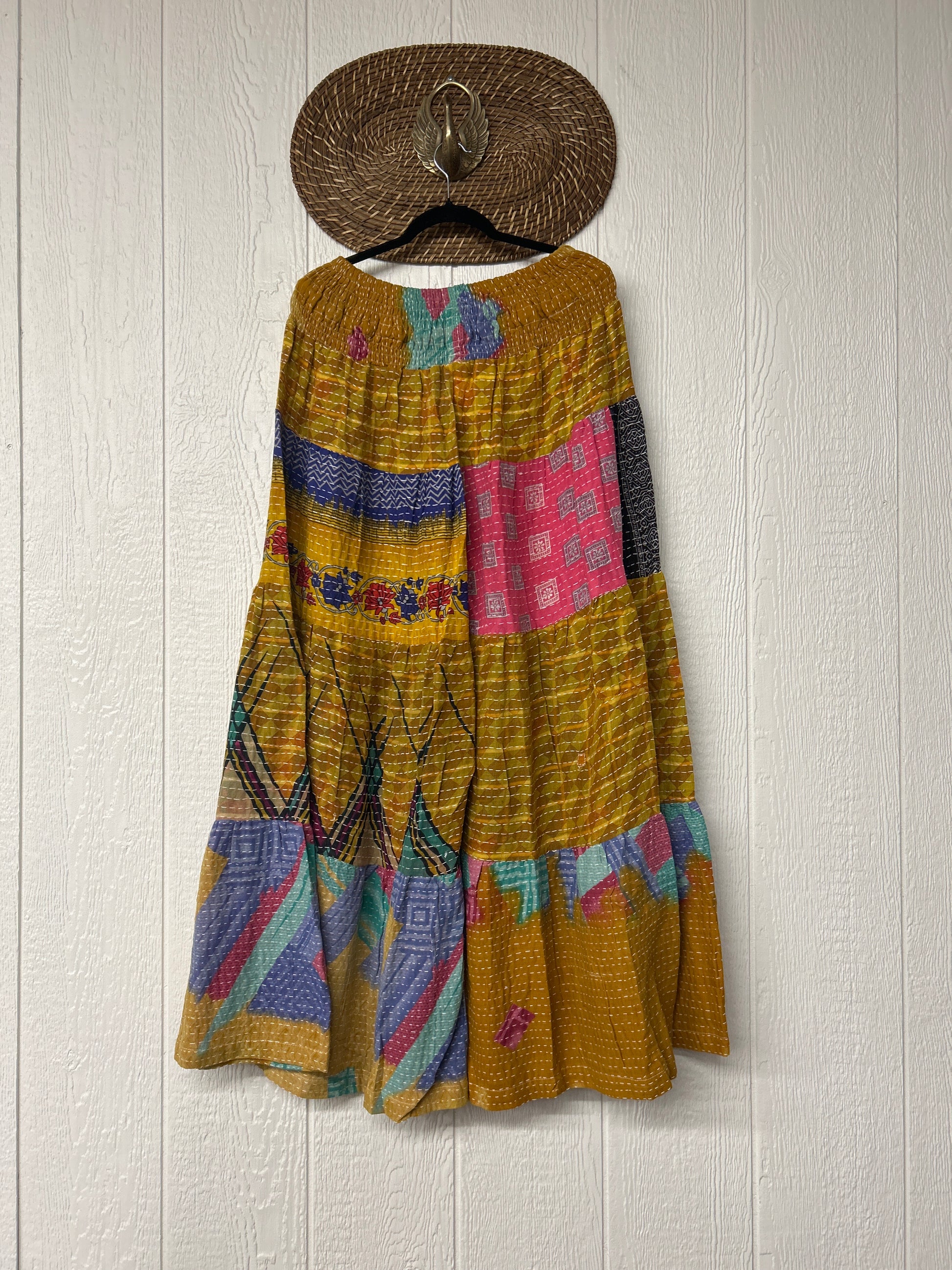Crafted from our ultra lux Kantha stitched cotton sari, the bold design of the Lotus Wide Leg Pants features tiered wide legs for an exaggerated silhouette and a slouchy interior pocket that is absolute perfection!