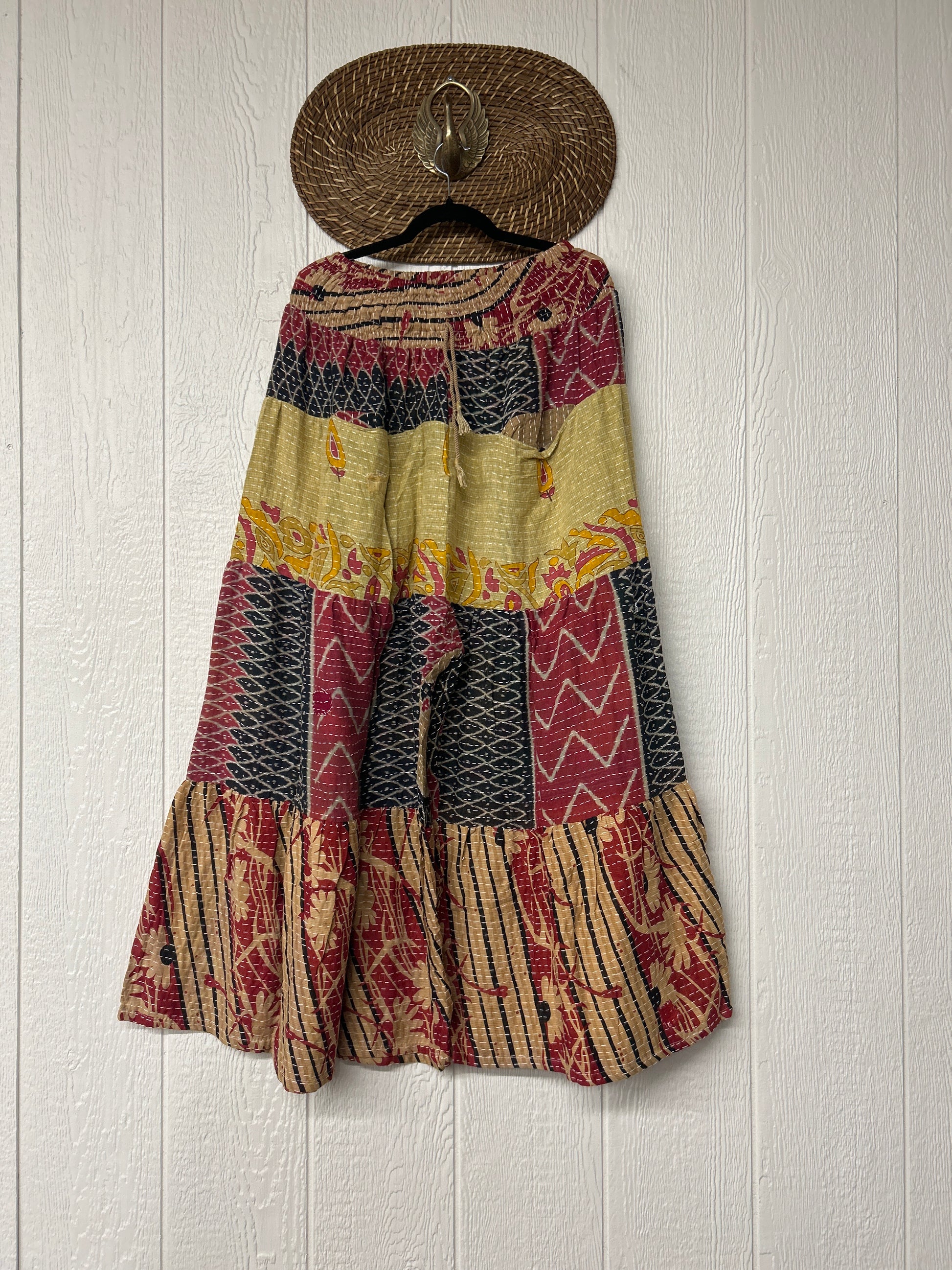 Crafted from our ultra lux Kantha stitched cotton sari, the bold design of the Lotus Wide Leg Pants features tiered wide legs for an exaggerated silhouette and a slouchy interior pocket that is absolute perfection!