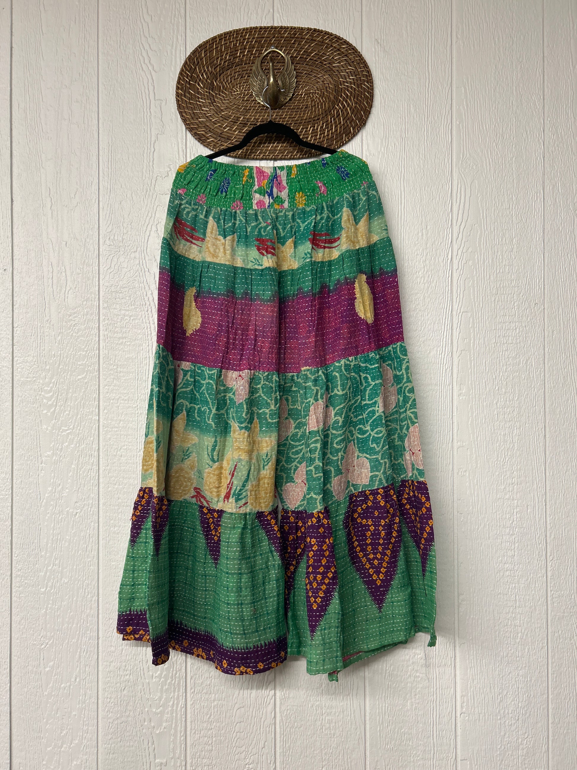 Crafted from our ultra lux Kantha stitched cotton sari, the bold design of the Lotus Wide Leg Pants features tiered wide legs for an exaggerated silhouette and a slouchy interior pocket that is absolute perfection!