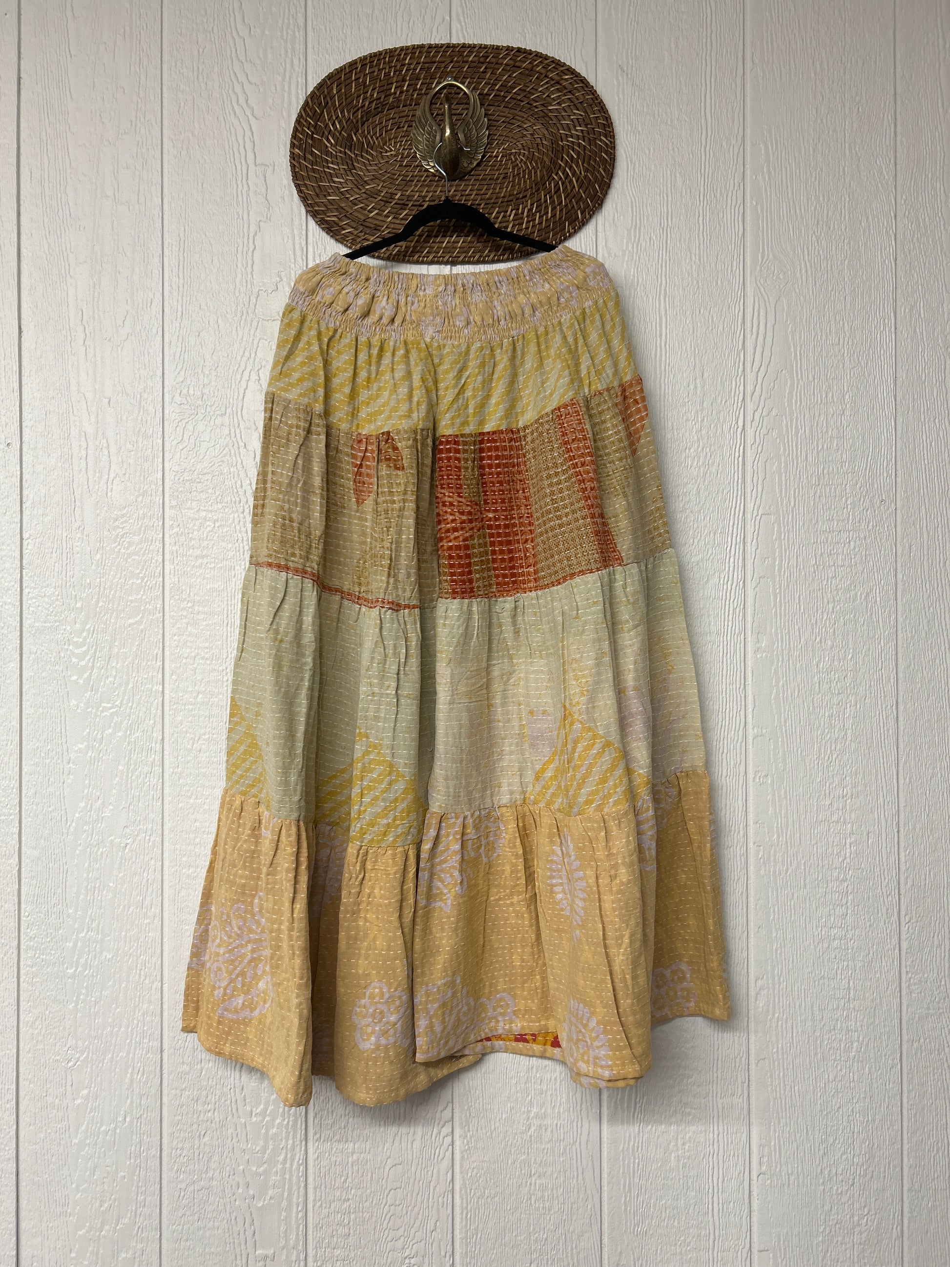 Crafted from our ultra lux Kantha stitched cotton sari, the bold design of the Lotus Wide Leg Pants features tiered wide legs for an exaggerated silhouette and a slouchy interior pocket that is absolute perfection!