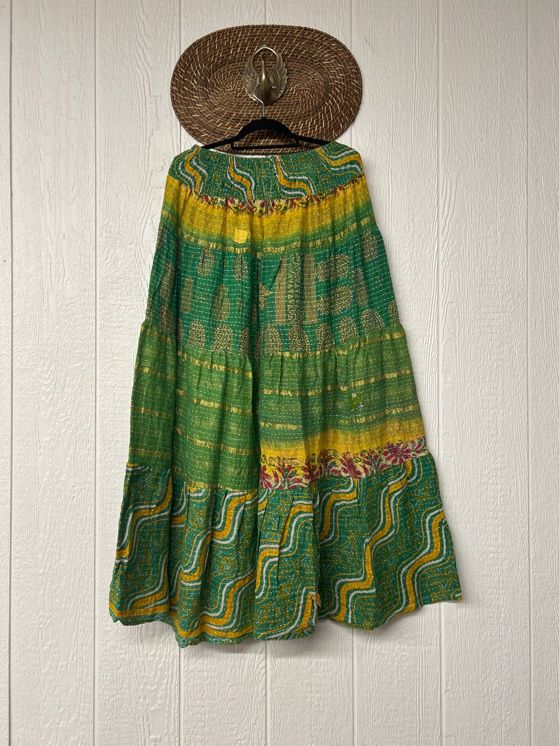 Crafted from our ultra lux Kantha stitched cotton sari, the bold design of the Lotus Wide Leg Pants features tiered wide legs for an exaggerated silhouette and a slouchy interior pocket that is absolute perfection!