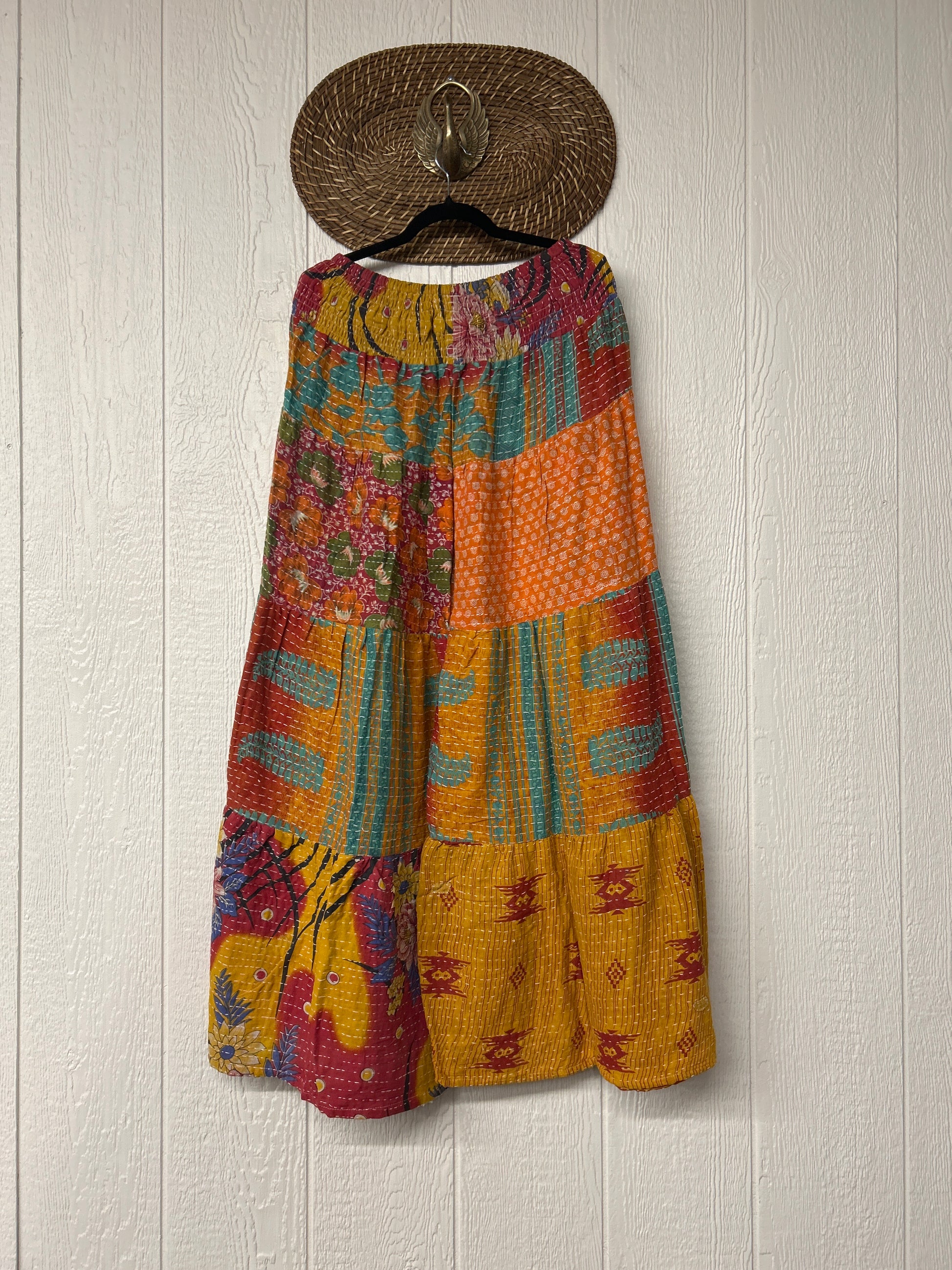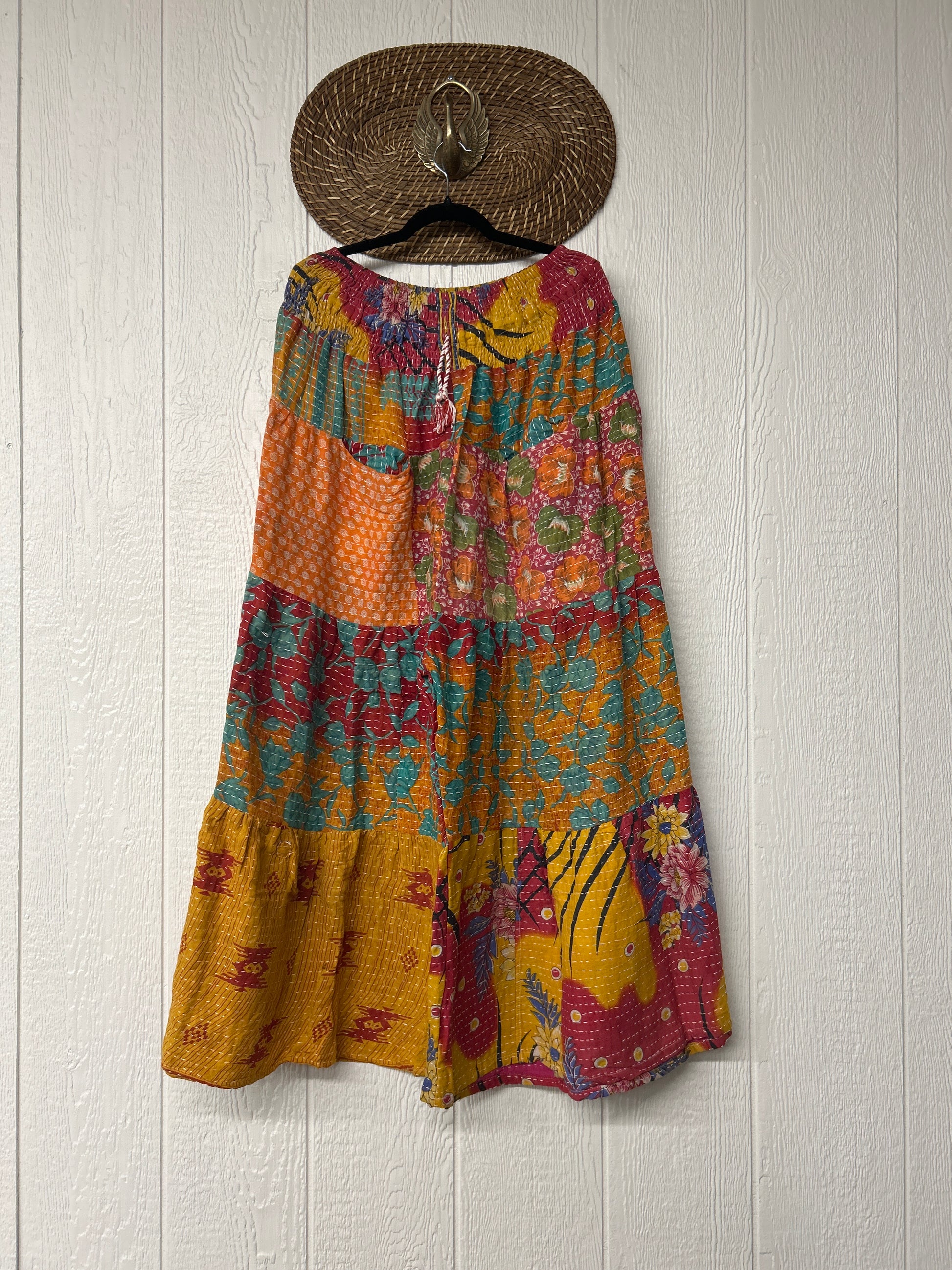 Crafted from our ultra lux Kantha stitched cotton sari, the bold design of the Lotus Wide Leg Pants features tiered wide legs for an exaggerated silhouette and a slouchy interior pocket that is absolute perfection!