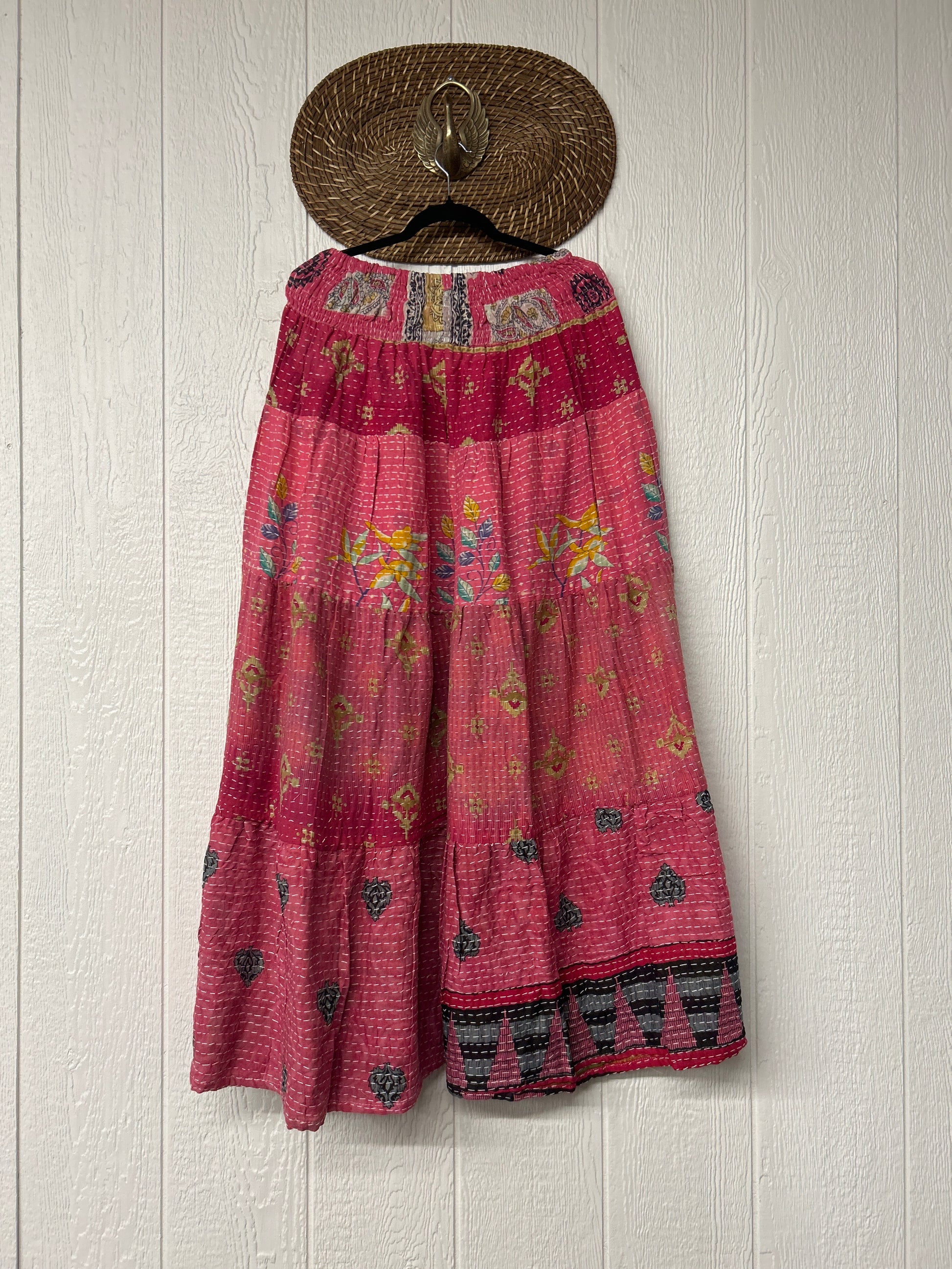 Crafted from our ultra lux Kantha stitched cotton sari, the bold design of the Lotus Wide Leg Pants features tiered wide legs for an exaggerated silhouette and a slouchy interior pocket that is absolute perfection!
