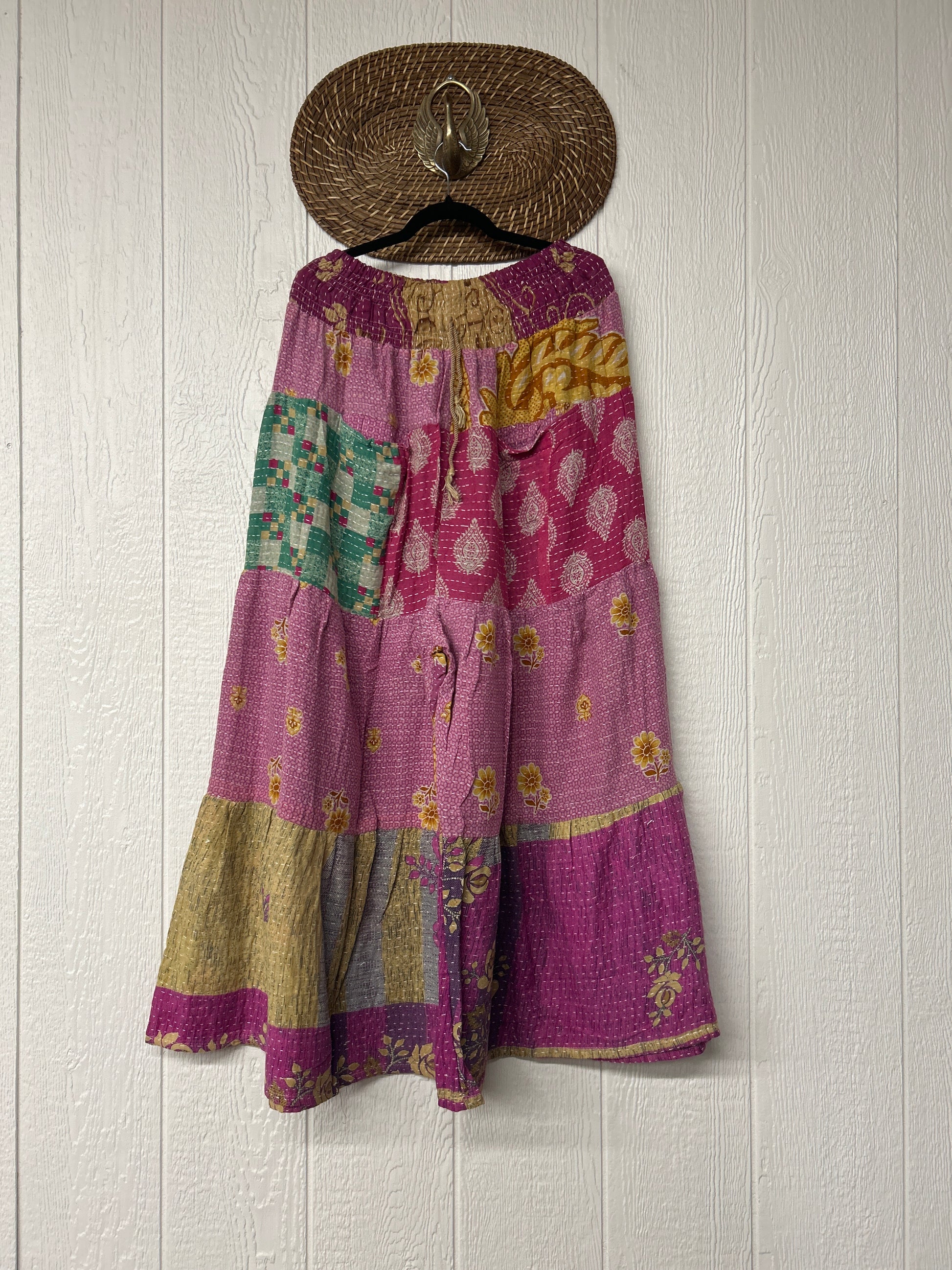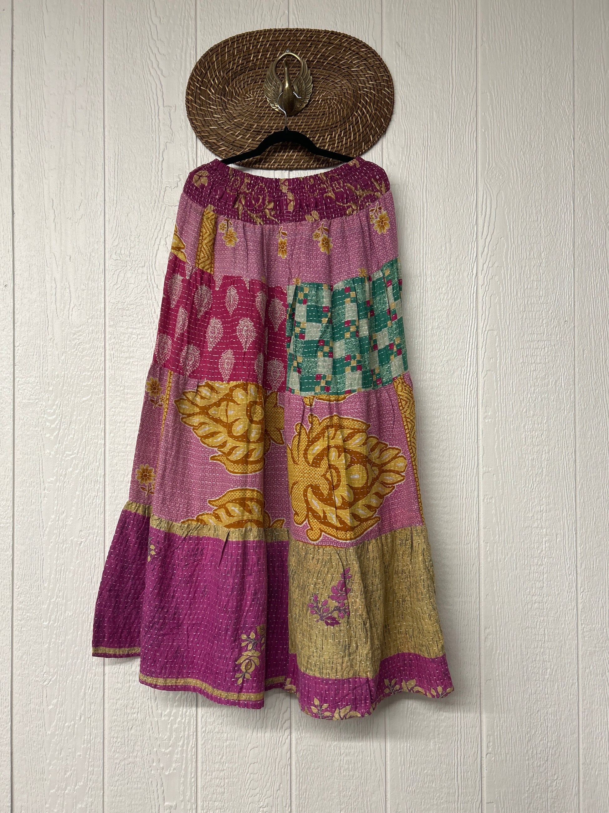 Crafted from our ultra lux Kantha stitched cotton sari, the bold design of the Lotus Wide Leg Pants features tiered wide legs for an exaggerated silhouette and a slouchy interior pocket that is absolute perfection!