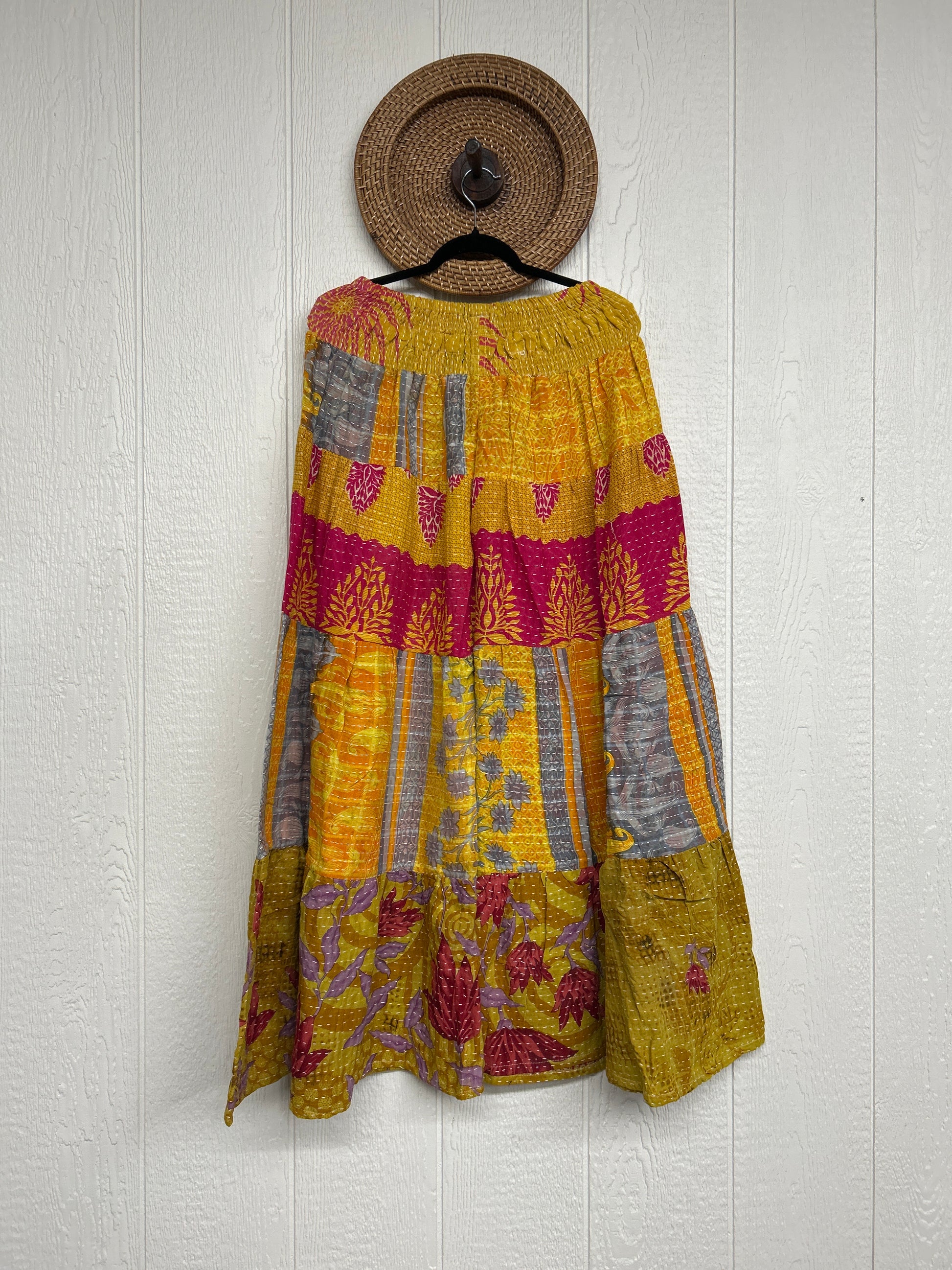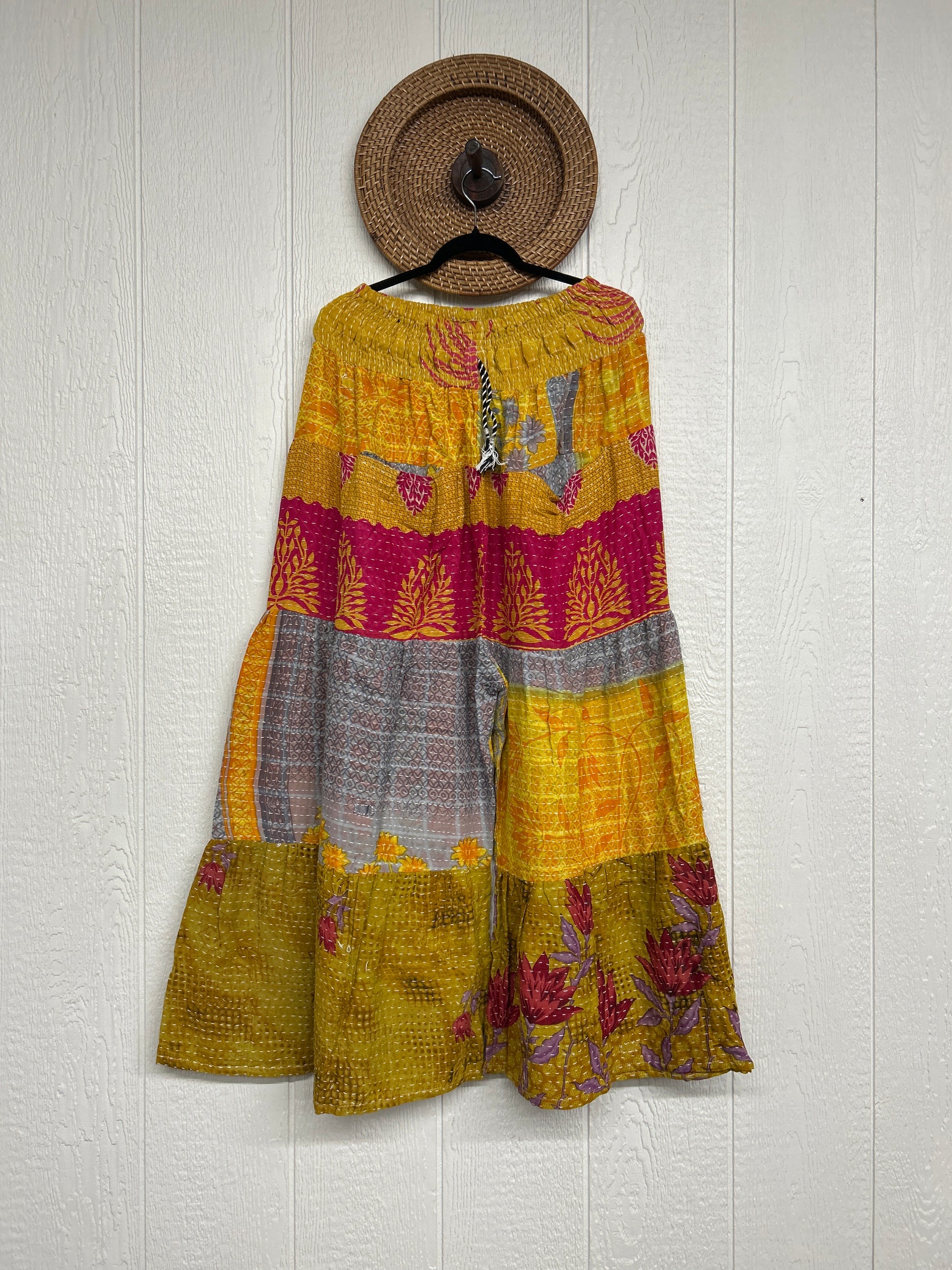 Crafted from our ultra lux Kantha stitched cotton sari, the bold design of the Lotus Wide Leg Pants features tiered wide legs for an exaggerated silhouette and a slouchy interior pocket that is absolute perfection!