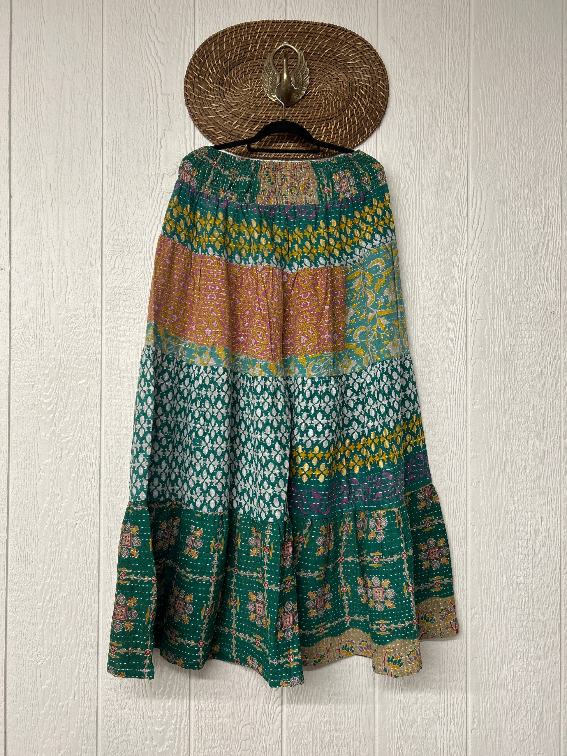 Crafted from our ultra lux Kantha stitched cotton sari, the bold design of the Lotus Wide Leg Pants features tiered wide legs for an exaggerated silhouette and a slouchy interior pocket that is absolute perfection!