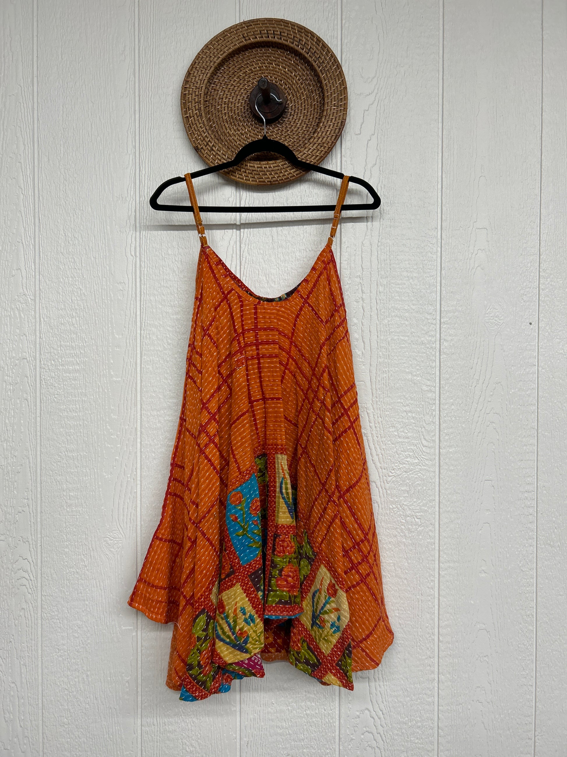 Crafted from our ultra lux cotton Kantha stitch sari the Moonchild Mini Dress features adjustable straps, interior pockets and an exaggerated sweep for extra dimension. A total vibe whether you wear as a layering piece under your favorite Kantha Bae pieces or on it's own.