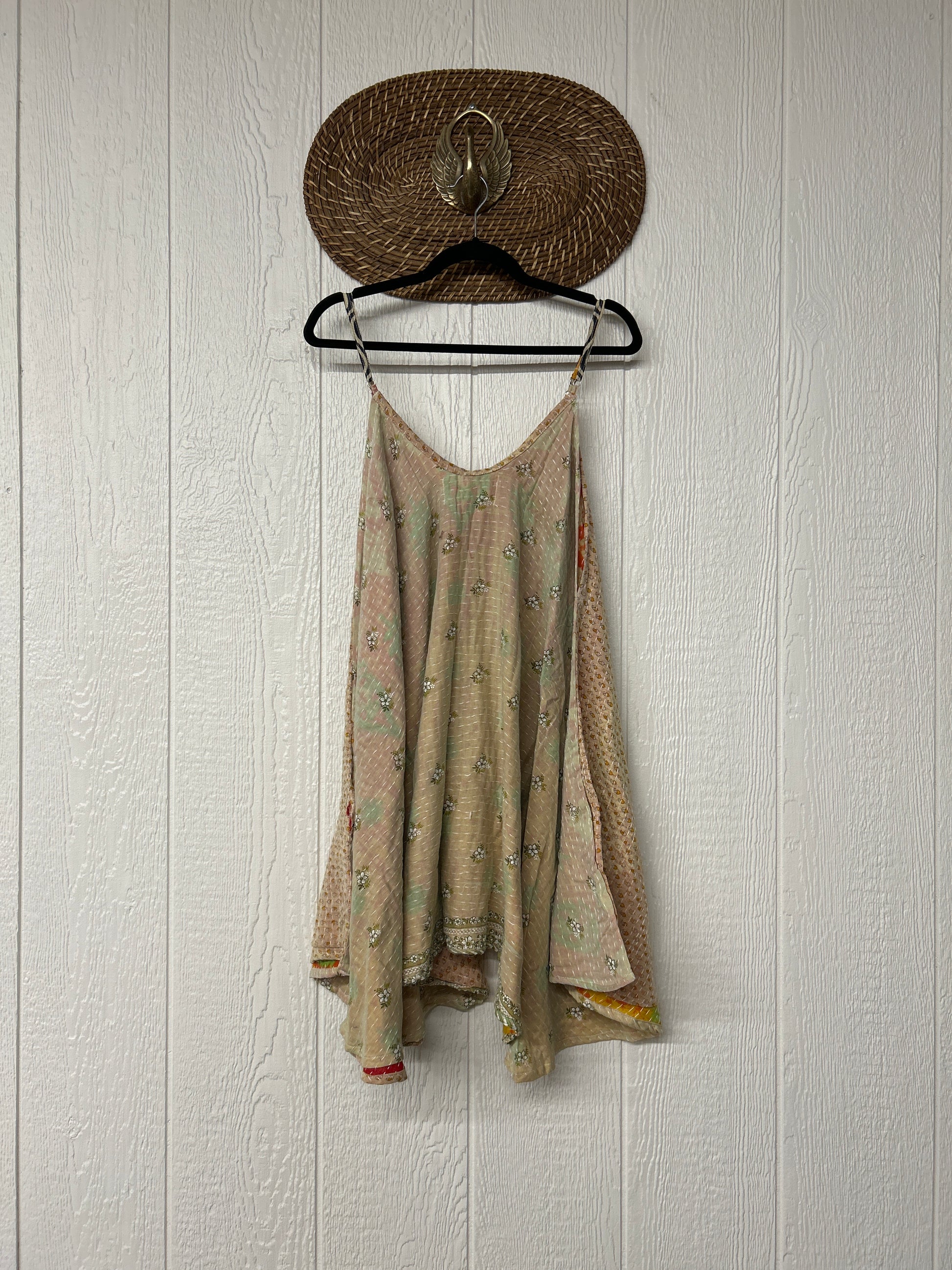 Crafted from our ultra lux cotton Kantha stitch sari the Moonchild Mini Dress features adjustable straps, interior pockets and an exaggerated sweep for extra dimension. A total vibe whether you wear as a layering piece under your favorite Kantha Bae pieces or on it's own.