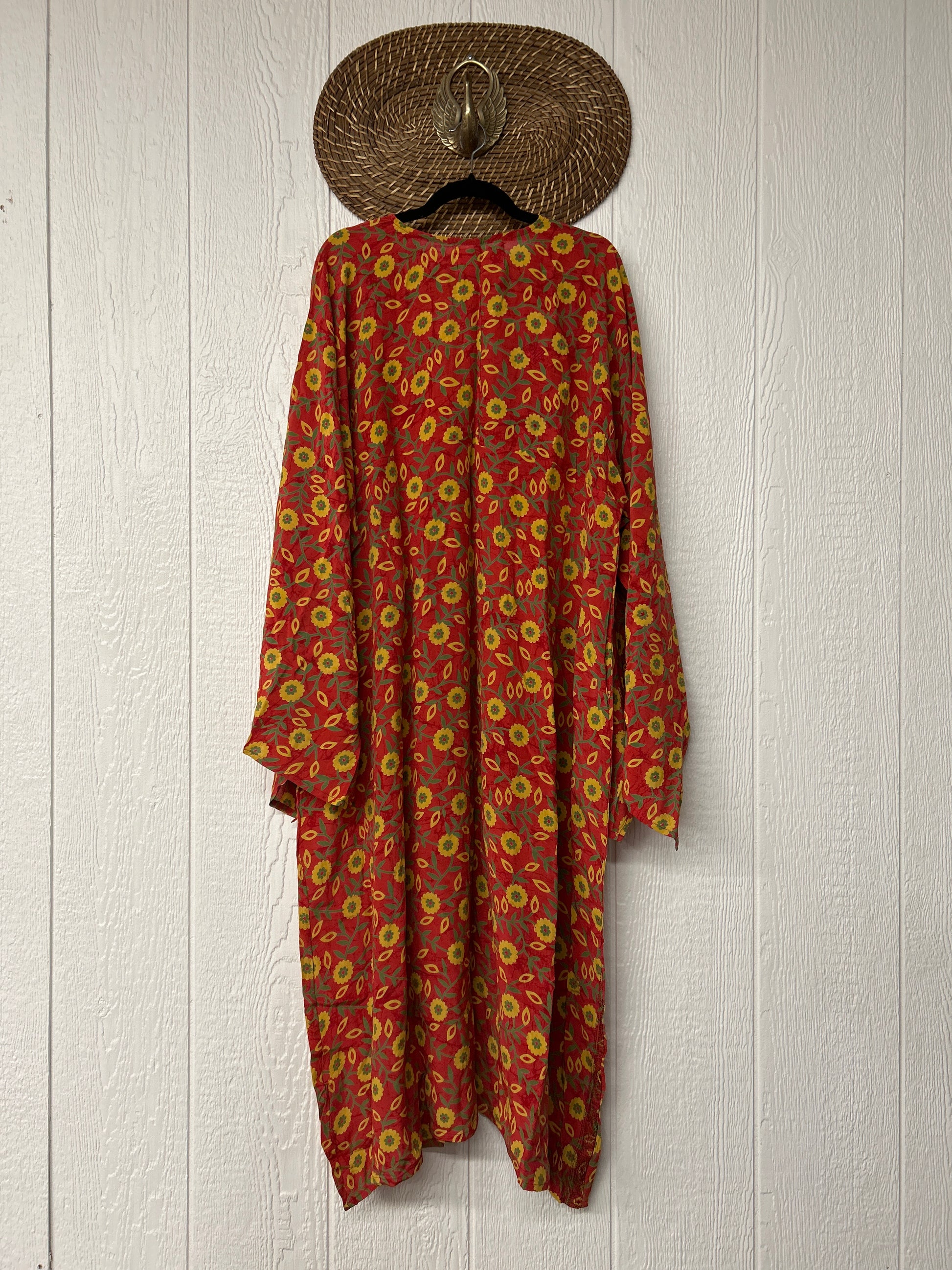 Fabrics may have small threads or holes in the layers. Color inconsistency or small stains may be present. The saris are sewn together and extend the life of each design.