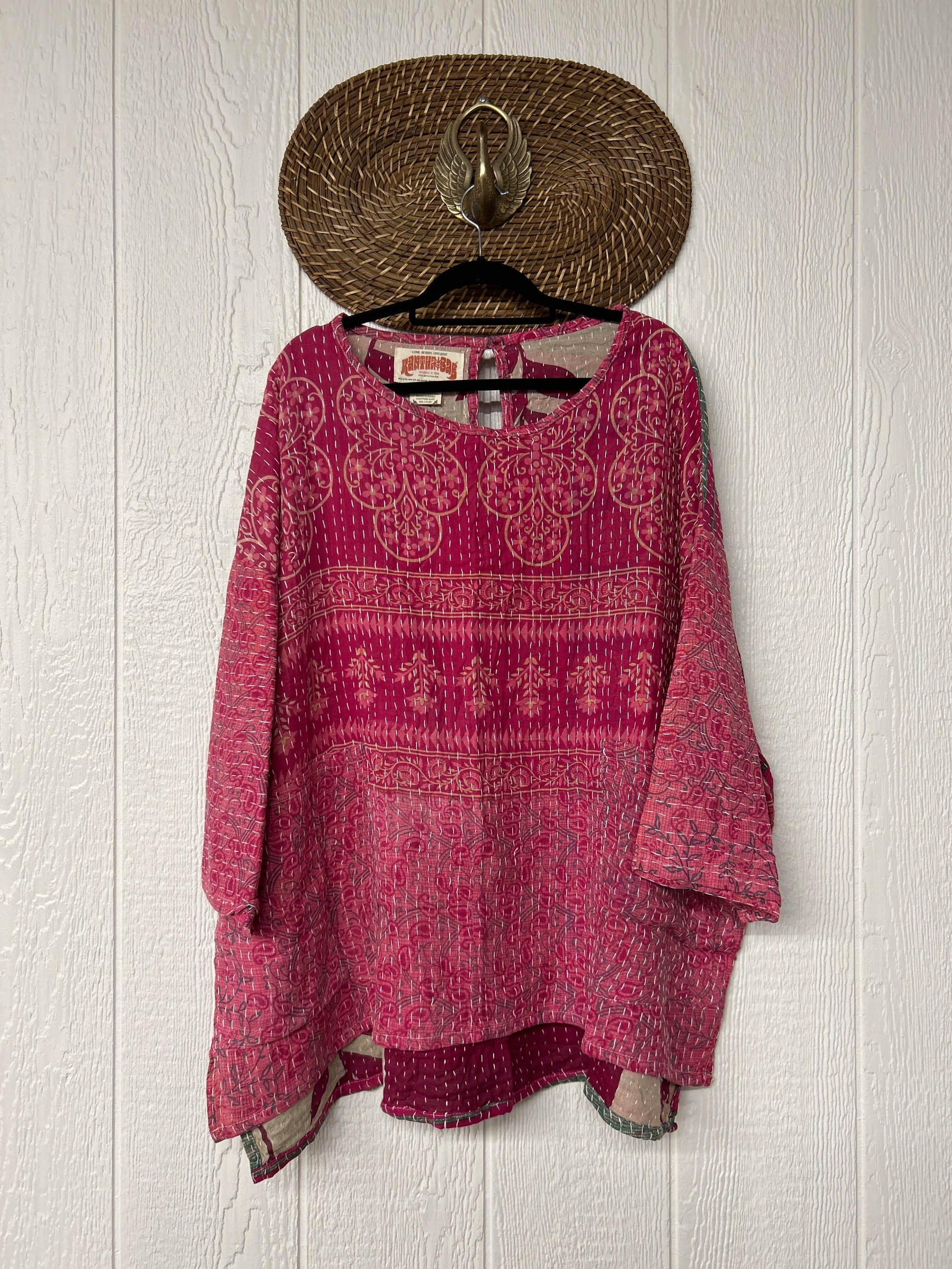 Features key hole in the back, slouchy pockets, a scoop neckline, high low hem with side slits for extra dimension. The Kantha Dream Pullover is fully reversible giving you two tops in one. We know it will be your new go to.
