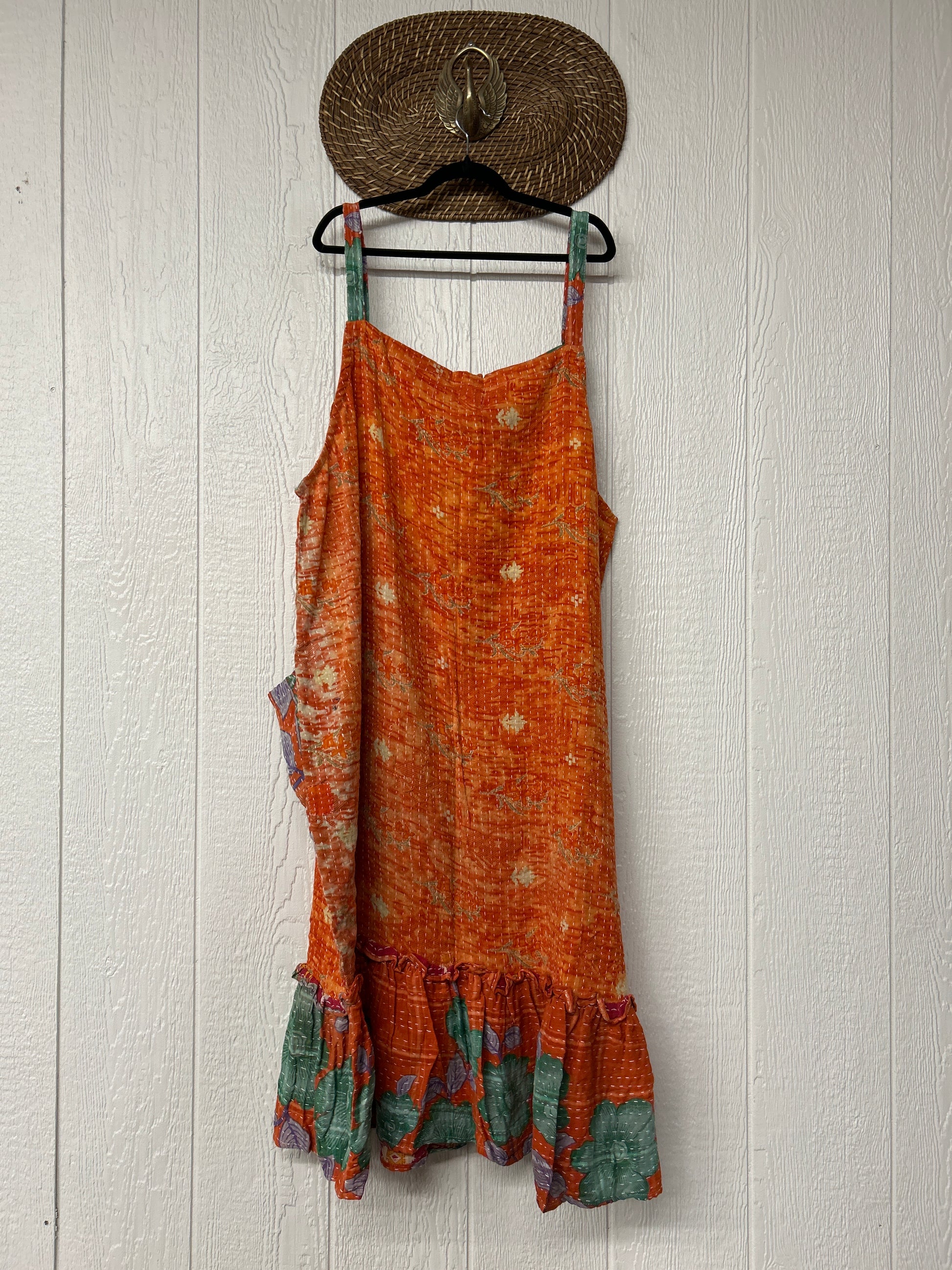 This groovy dream is made from our vintage cotton kantha sari. Crafted and sewn by families in a small village in Northern India providing work and a fair living. Disclosure: Our vintage styles have lived a full life before becoming the designs in our shop. Fabrics may have small threads or holes in the layers. Color inconsistency or small stains may be present.The saris are sewn together and extend the life of each design. Imperfections should be celebrated.