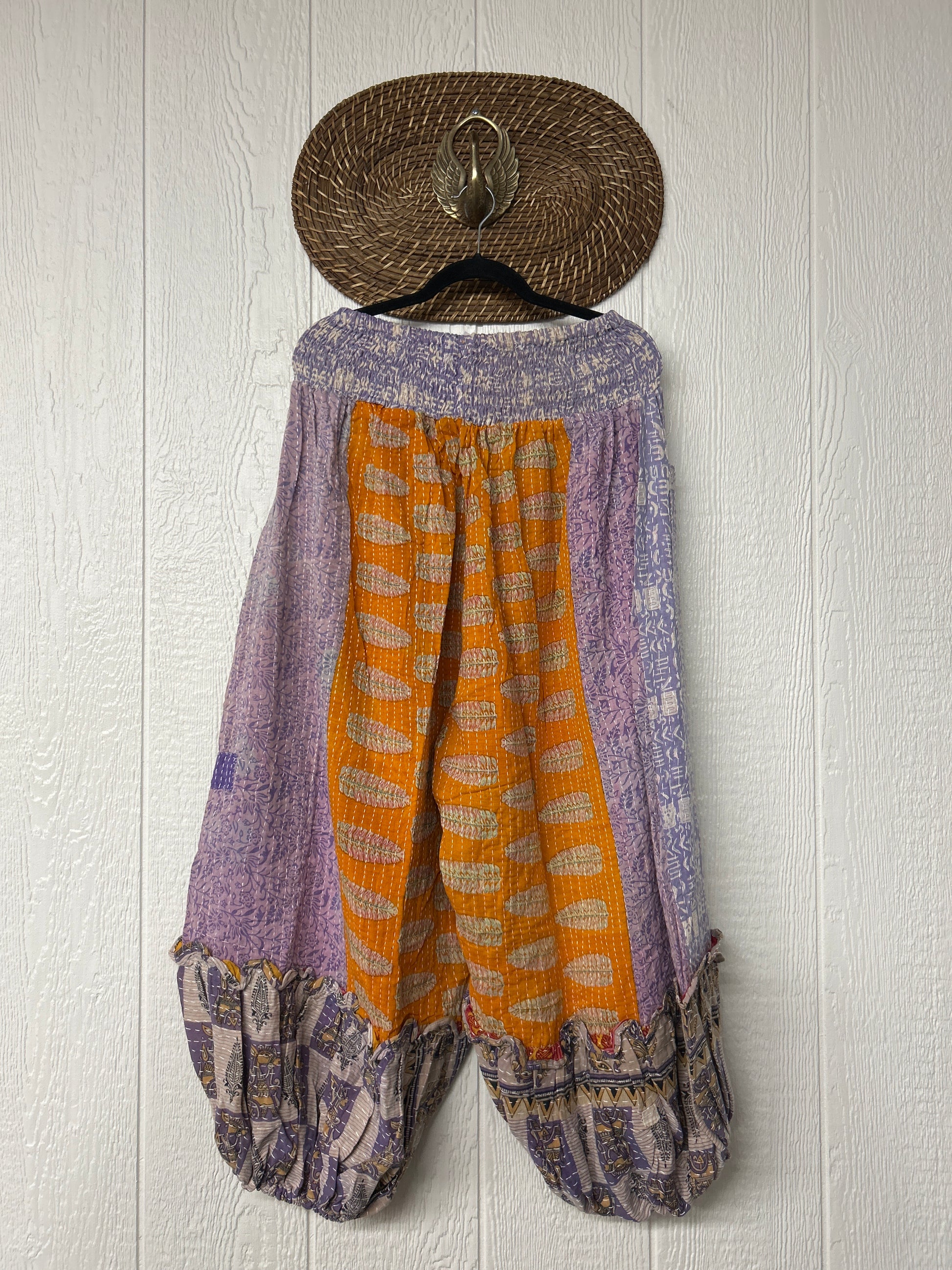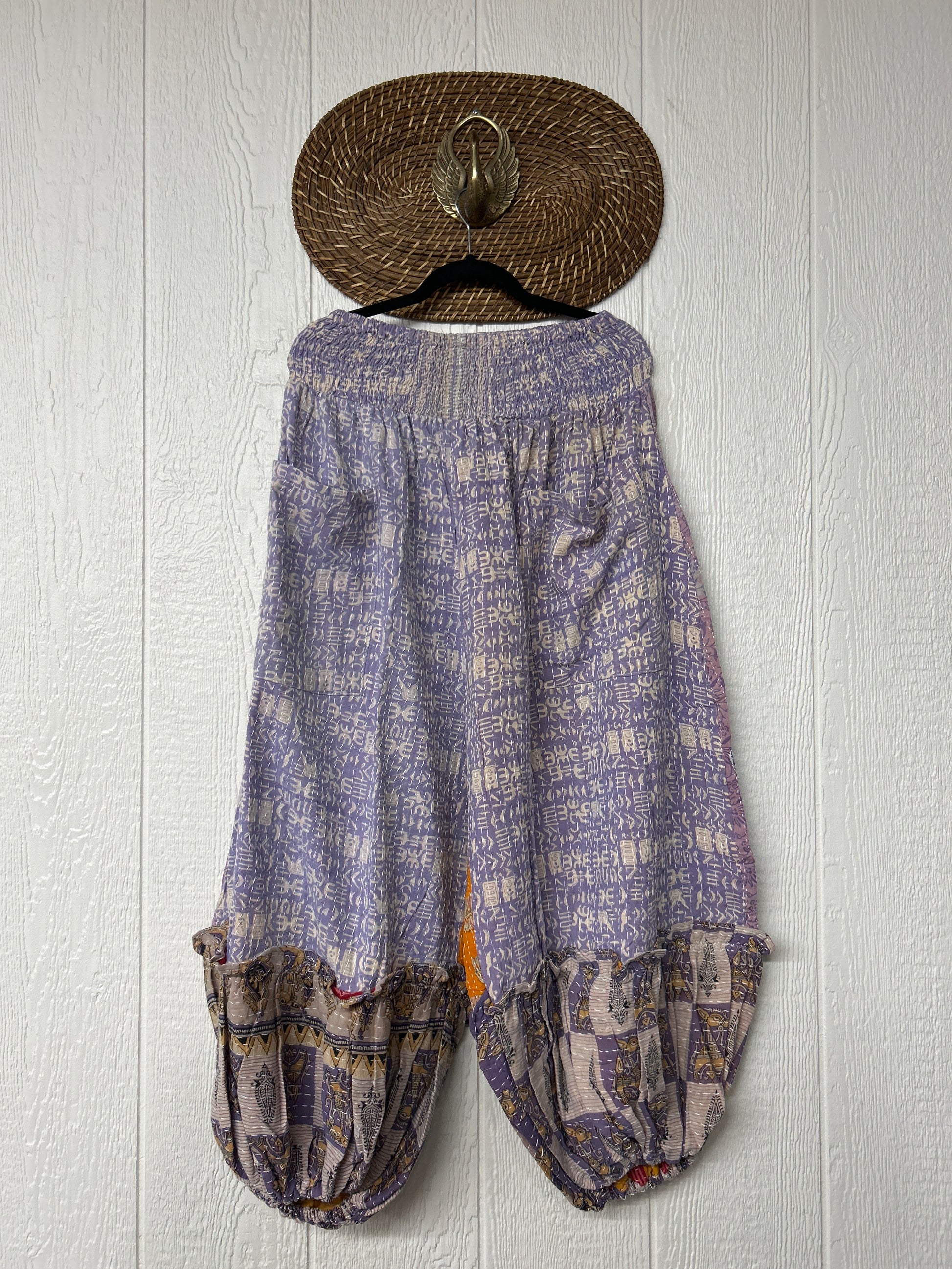 Crafted from our ultra lux kantha stitched vintage cotton sari these pants feature exterior slouchy pockets, a stretchy waistband and an elastic ankle opening. Dress these dream pants up or down to become the ultimate vibe!