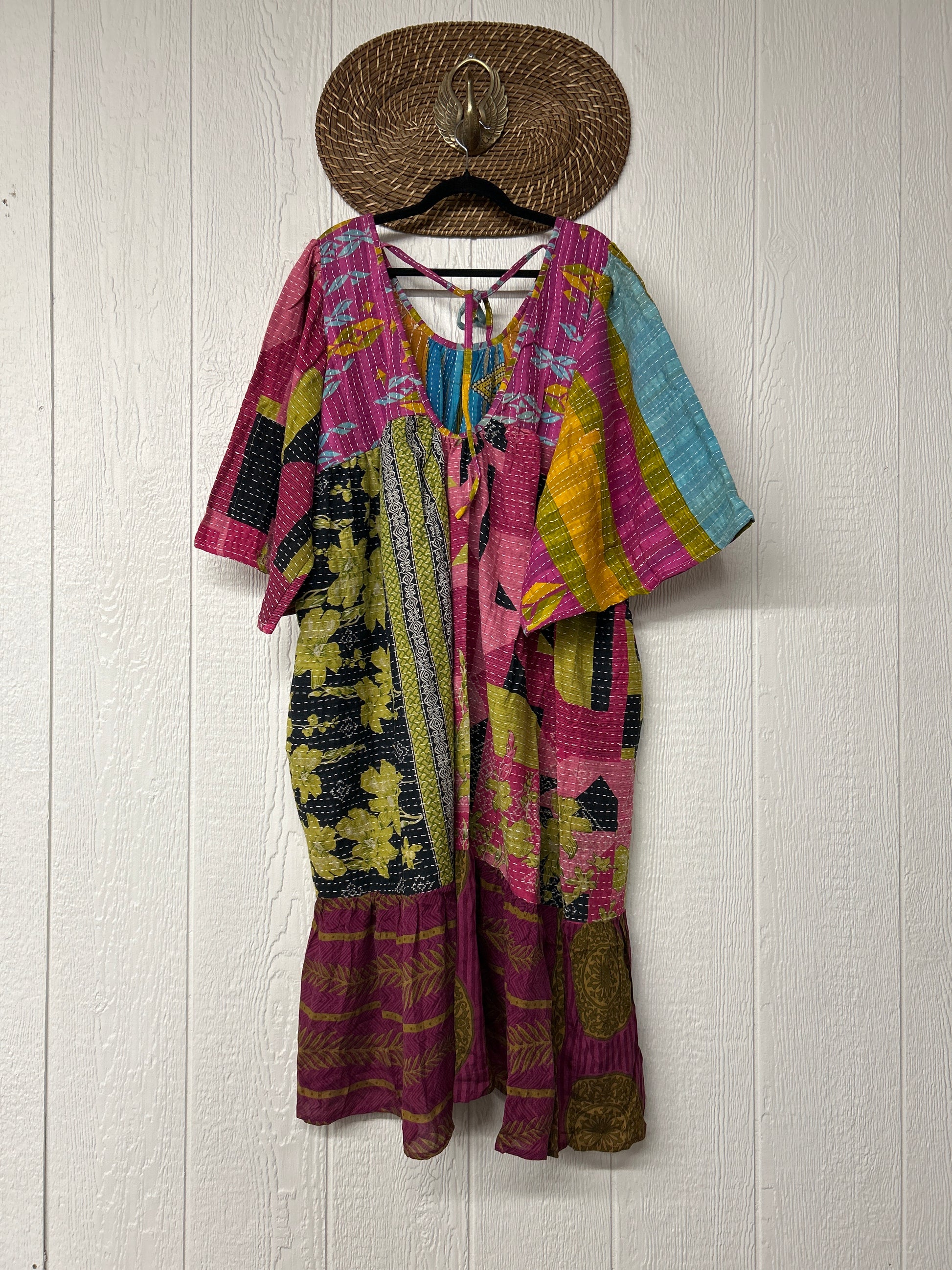 Disclosure: Our vintage styles have lived a full life before becoming the designs in our shop. Fabrics may have small threads or holes in the layers. Color inconsistency or small stains may be present. The saris are sewn together and extend the life of each design. Imperfections should be celebrated.