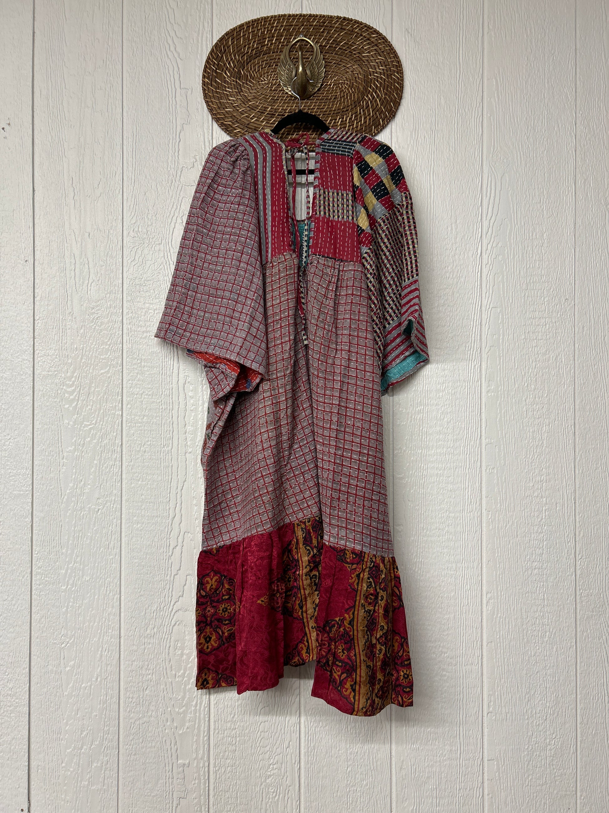 Disclosure: Our vintage styles have lived a full life before becoming the designs in our shop. Fabrics may have small threads or holes in the layers. Color inconsistency or small stains may be present. The saris are sewn together and extend the life of each design. Imperfections should be celebrated.