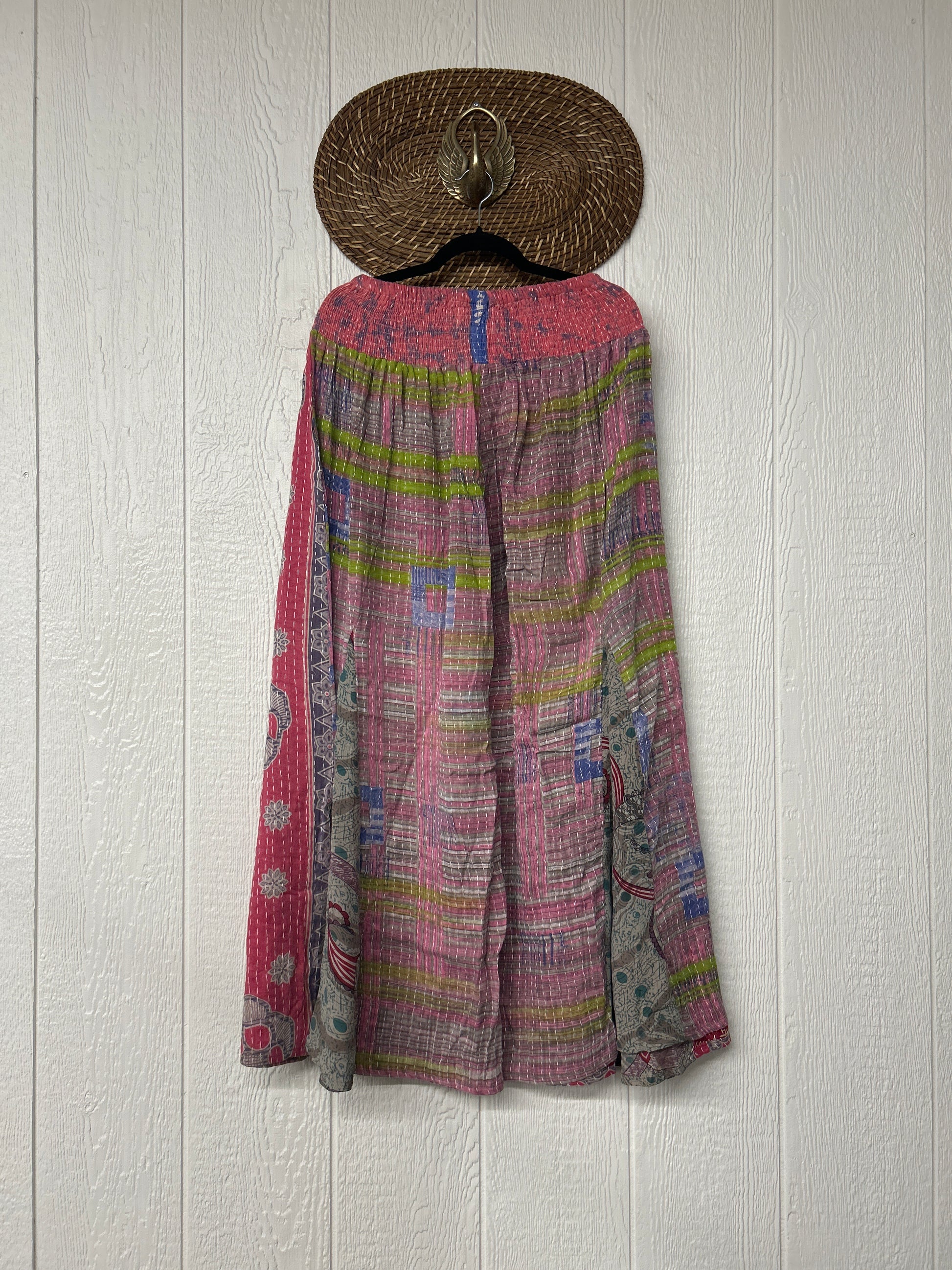 Crafted from our ultra lux vintage cotton kantha stitched sari these floaty pants feature super wide legs with front and back vintage crepe inserts that make your pants dance when you walk. Front slouchy pockets are deep enough to fill with your treasures.