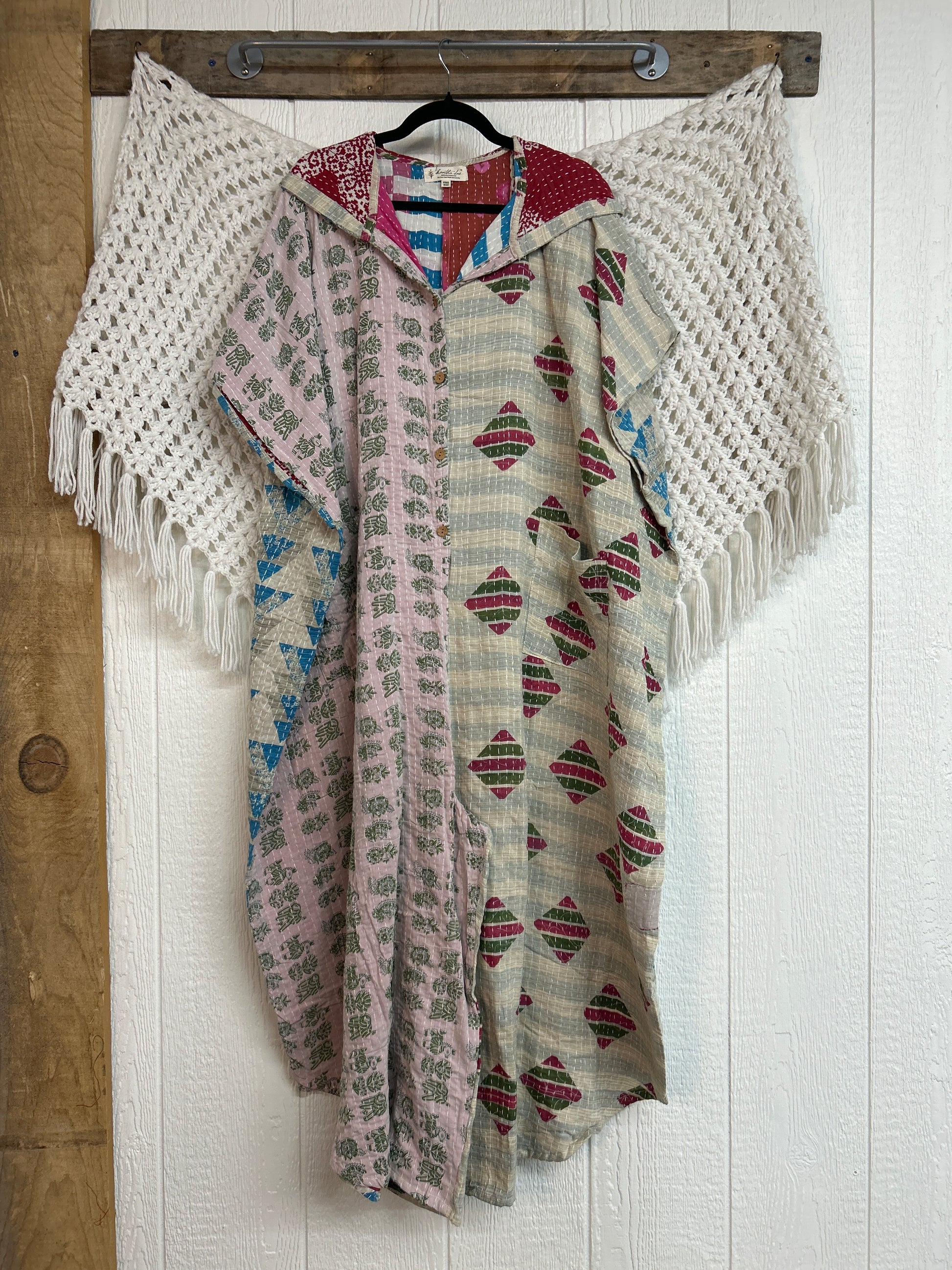 Disclosure: Our vintage styles have lived a full life before becoming the designs in our shop. Fabrics may have small threads or holes in the layers. Color inconsistency or small stains may be present. The saris are sewn together and extend the life of each design. Imperfections should be celebrated