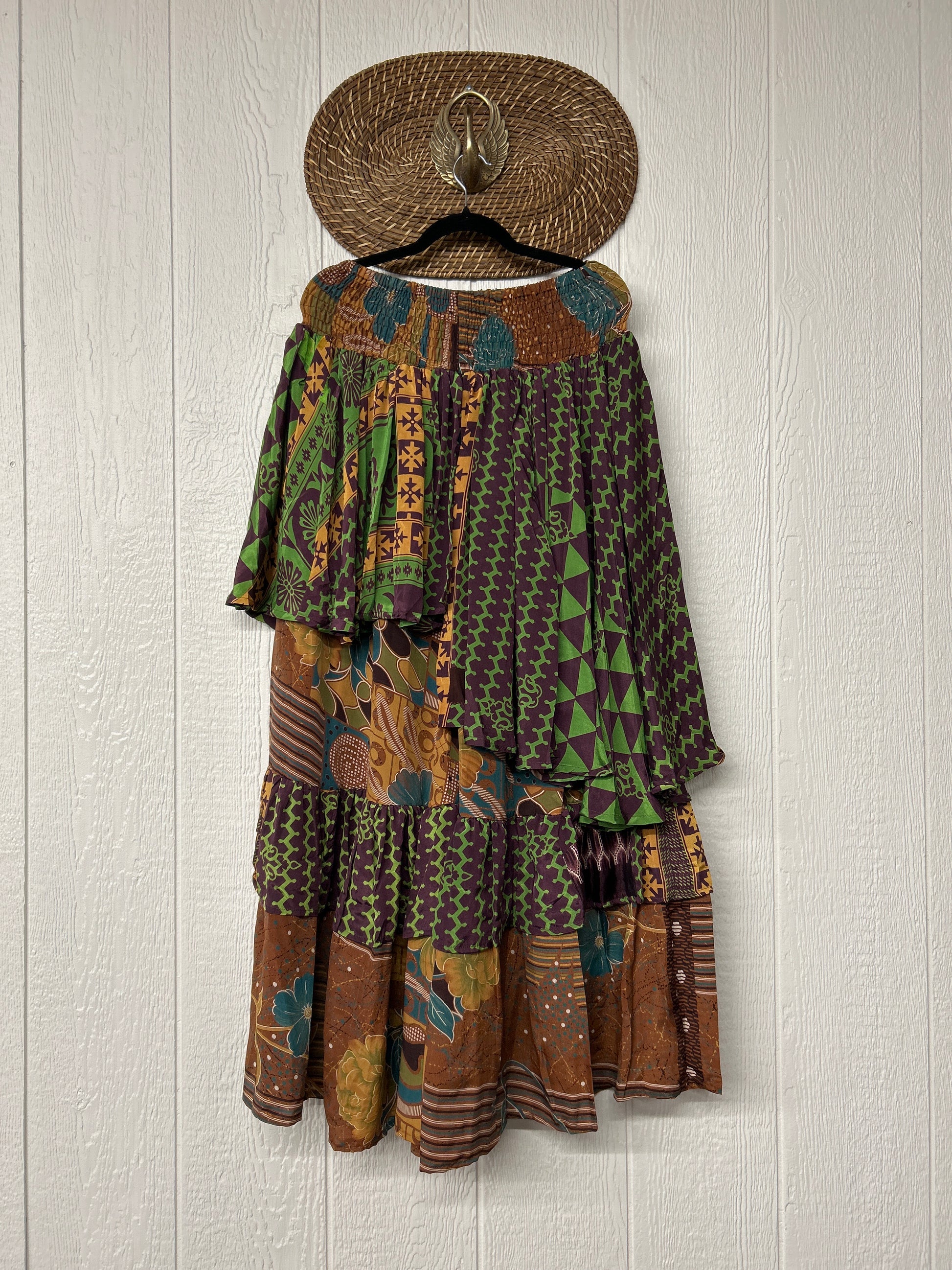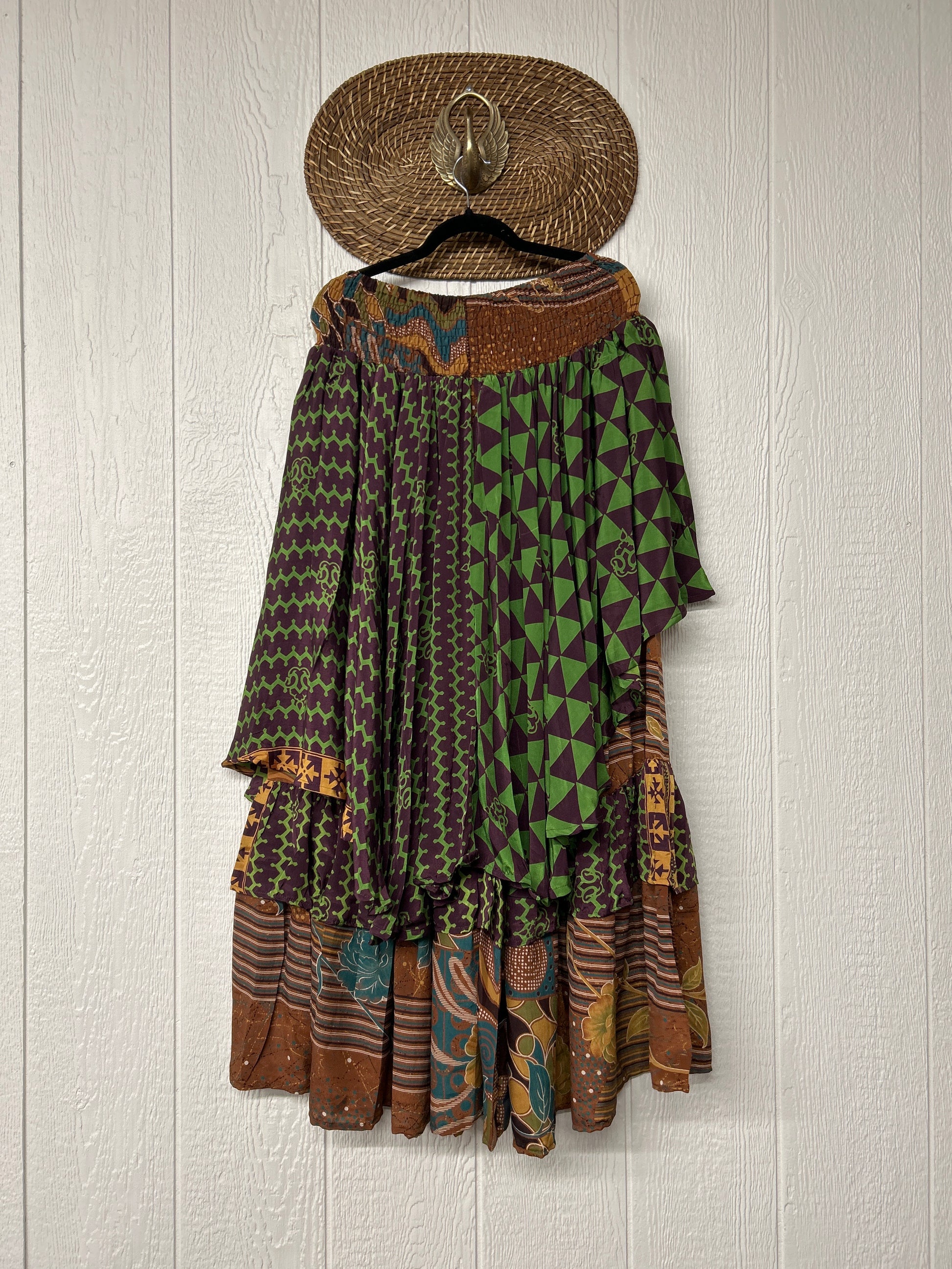 Crafted from vintage rasgulla sari these ethereal pants features stretchy waist, super wide legs, double tier hem and a skirt layer. these pants will make you want to dance! One size, recommended up to size 22/24 Crafted and sewn by families in a small village in Northern India providing work and a fair living. This product should be hand washed and line dried for longest life. For softness, fluff in the dryer on low heat after it has dried from hand washing. Disclosure: Our vintage styles have lived a full life before becoming the designs in our shop. Fabrics may have small threads or holes in the layers. Color inconsistency or small stains may be present. The saris are sewn together and extend the life of each design. Imperfections should be celebrated.