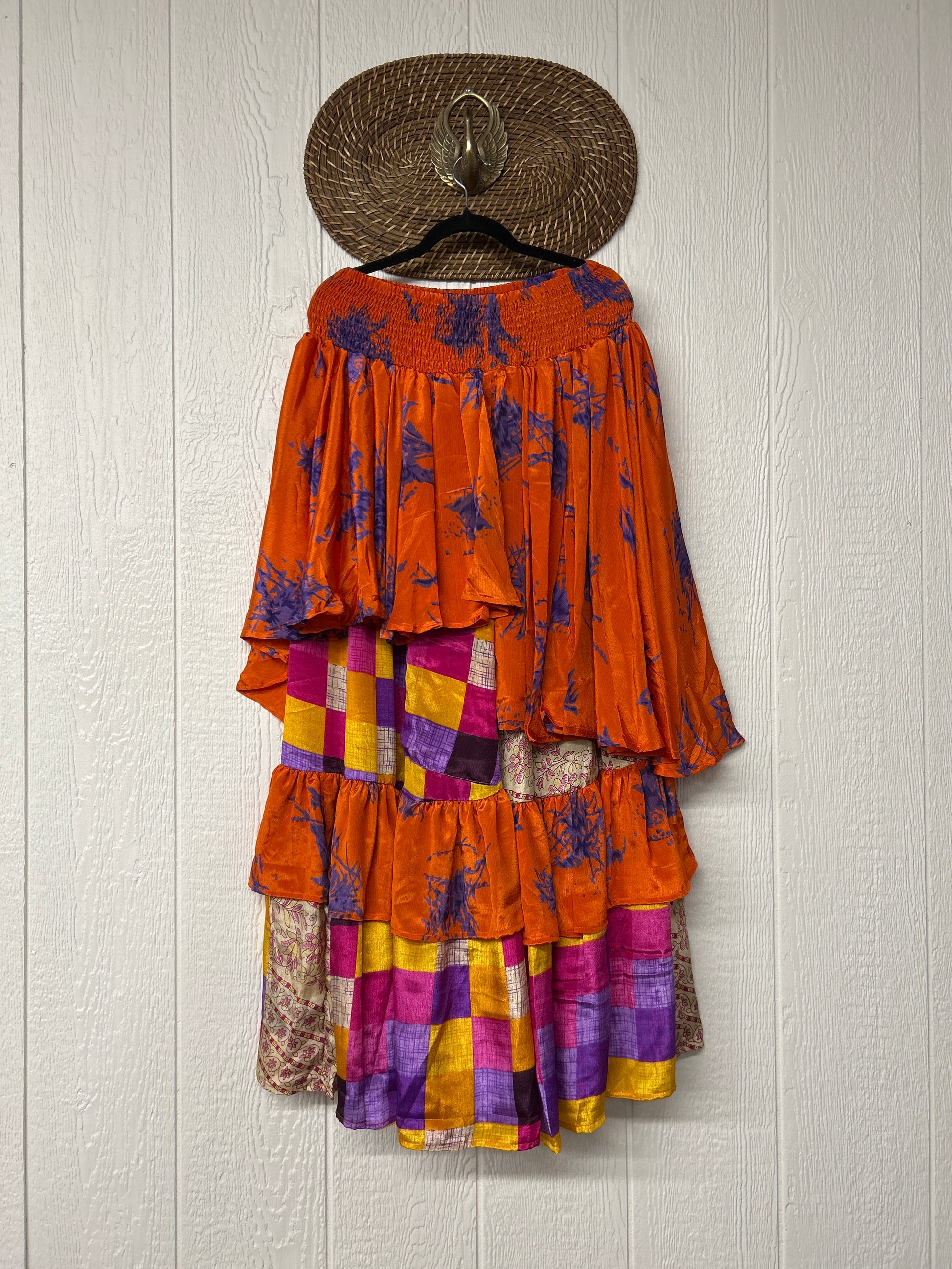Crafted from vintage rasgulla sari these ethereal pants features stretchy waist, super wide legs, double tier hem and a skirt layer. these pants will make you want to dance! One size, recommended up to size 22/24 Crafted and sewn by families in a small village in Northern India providing work and a fair living. This product should be hand washed and line dried for longest life. For softness, fluff in the dryer on low heat after it has dried from hand washing. Disclosure: Our vintage styles have lived a full life before becoming the designs in our shop. Fabrics may have small threads or holes in the layers. Color inconsistency or small stains may be present. The saris are sewn together and extend the life of each design. Imperfections should be celebrated.