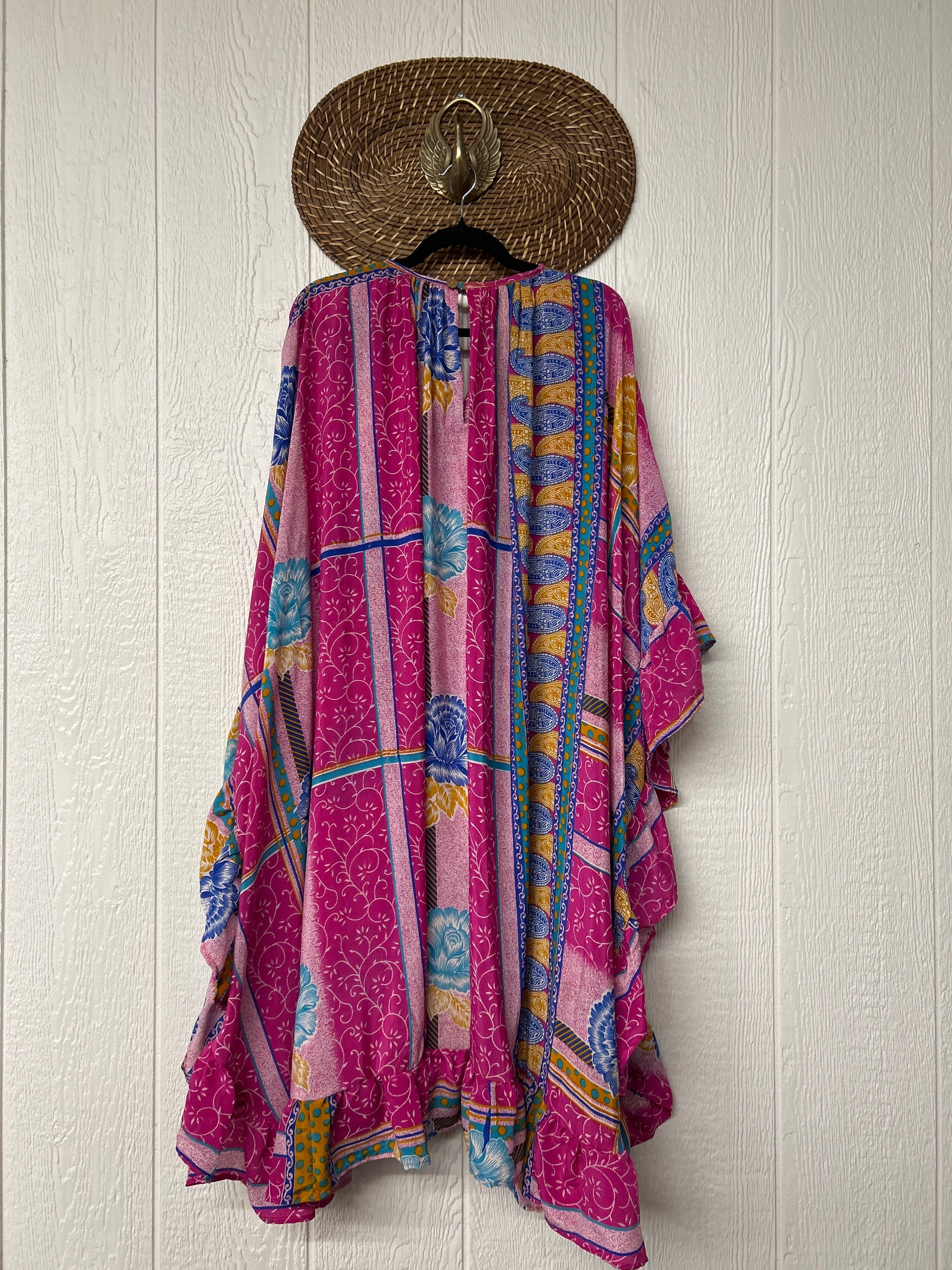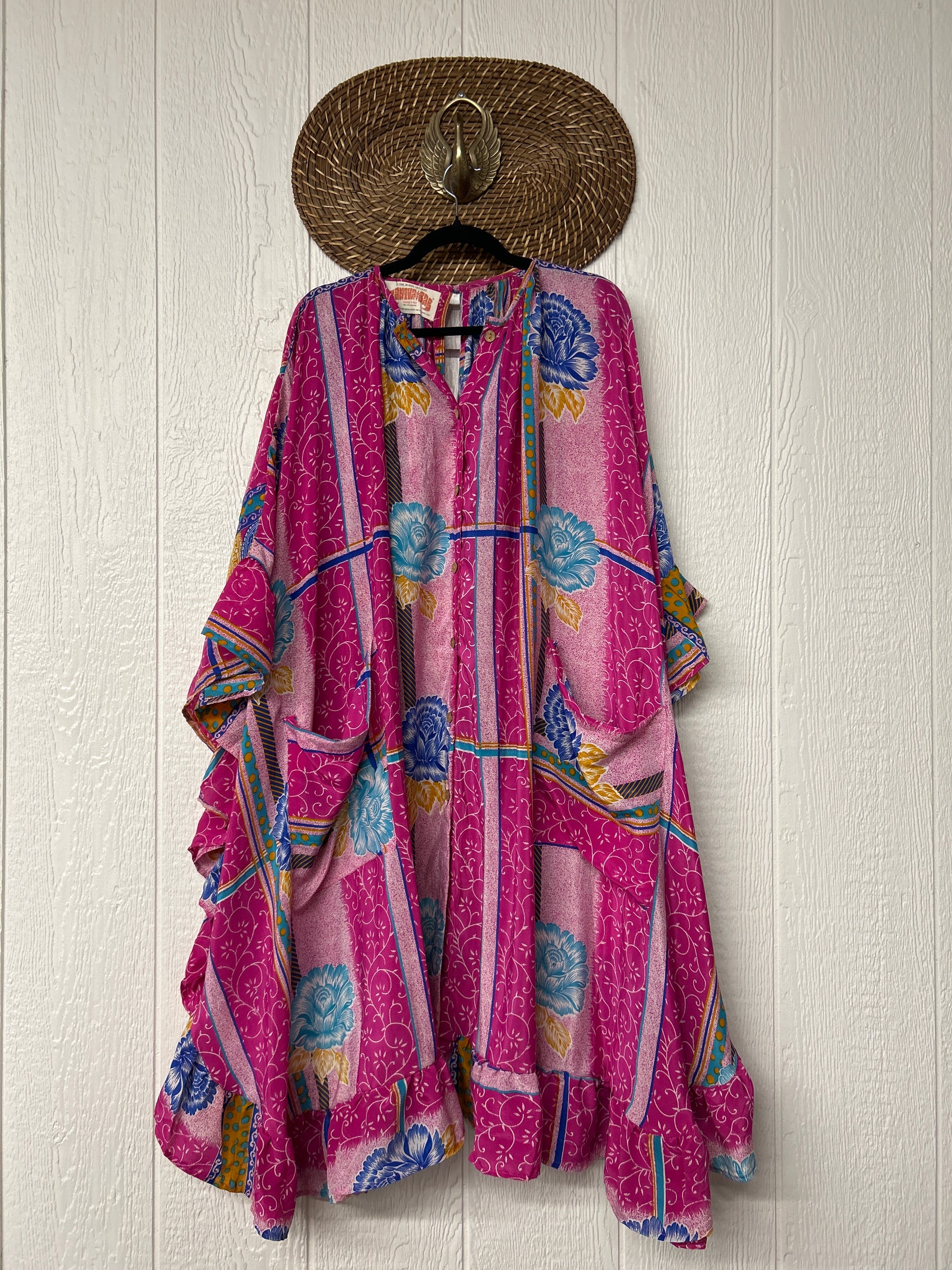 This dreamy muu is crafted from our ultra lux vintage rasgulla sari and features a button down placket and slouchy exterior pockets. Ruffles around the hem make this the ultimate rockstar layer that you can wear closed as a muu or open as a kimono!!