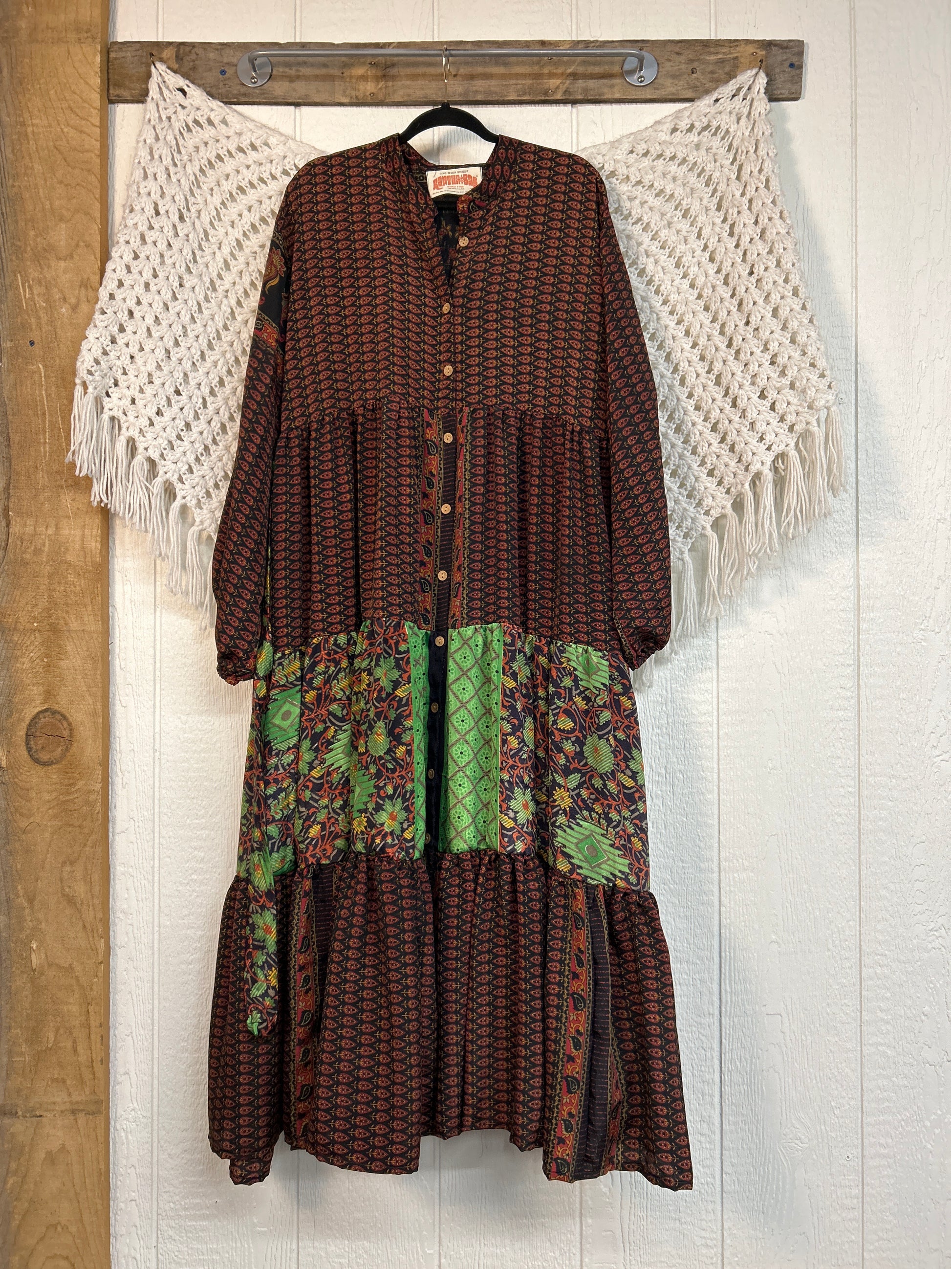 Disclosure: Our vintage styles have lived a full life before becoming the designs in our shop. Fabrics may have small threads or holes in the layers. Color inconsistency or small stains may be present. The saris are sewn together and extend the life of each design.