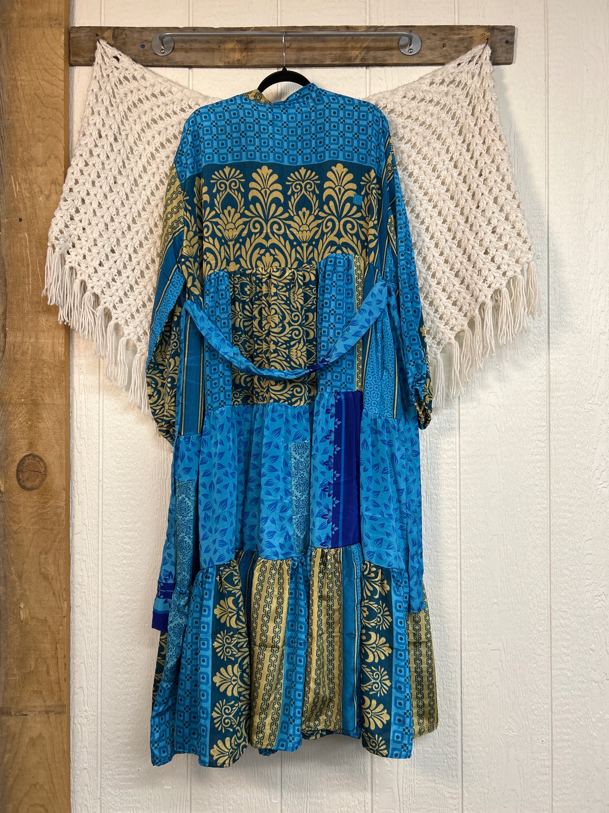 Disclosure: Our vintage styles have lived a full life before becoming the designs in our shop. Fabrics may have small threads or holes in the layers. Color inconsistency or small stains may be present. The saris are sewn together and extend the life of each design.