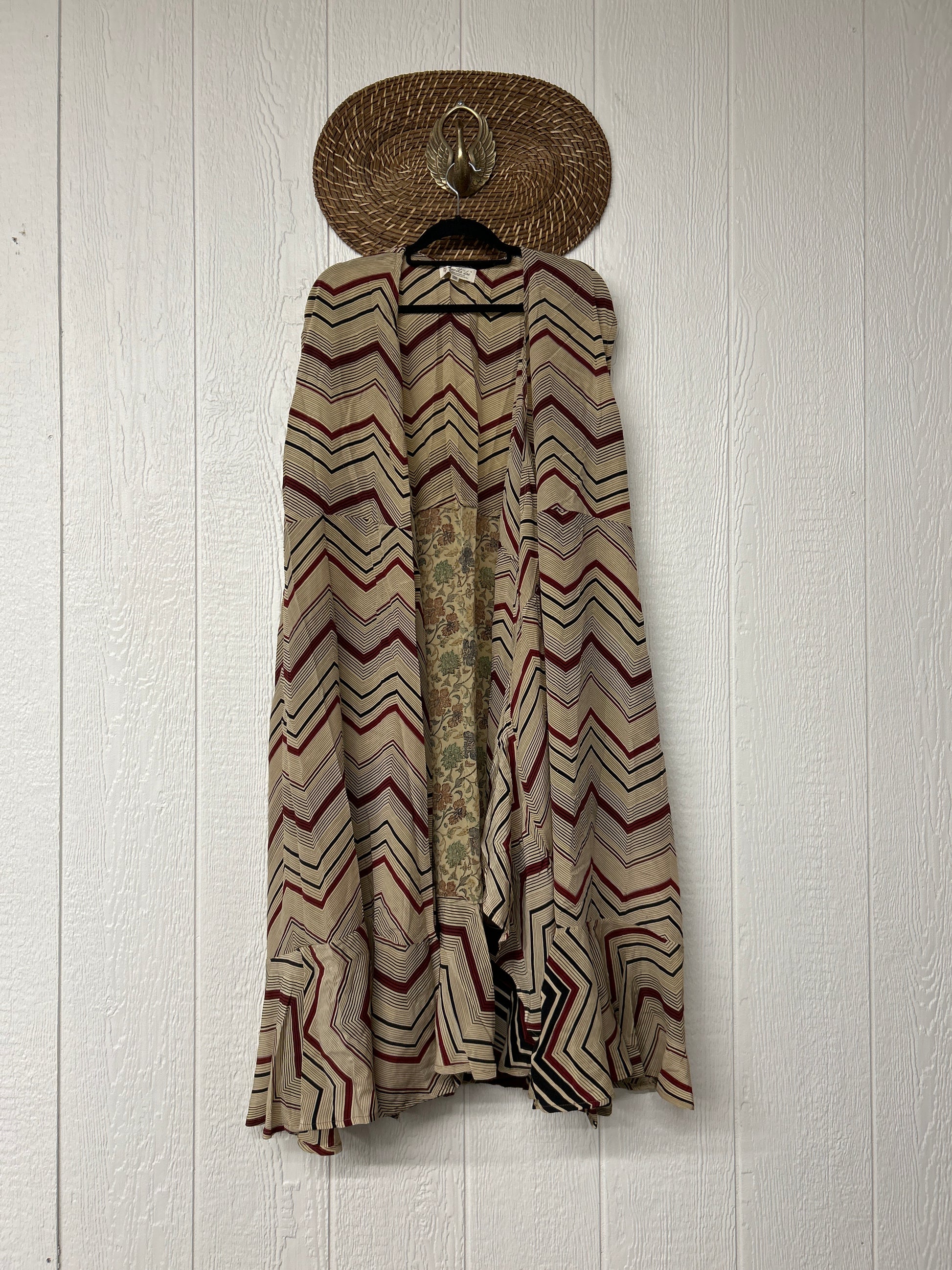 The Rhapsody Kimono Vest is crafted from our ultra lux vintage crepe silk sari. Features ruffle details throughout, interior pockets and a built in sash tie closure to wear open or closed. We're obsessed!