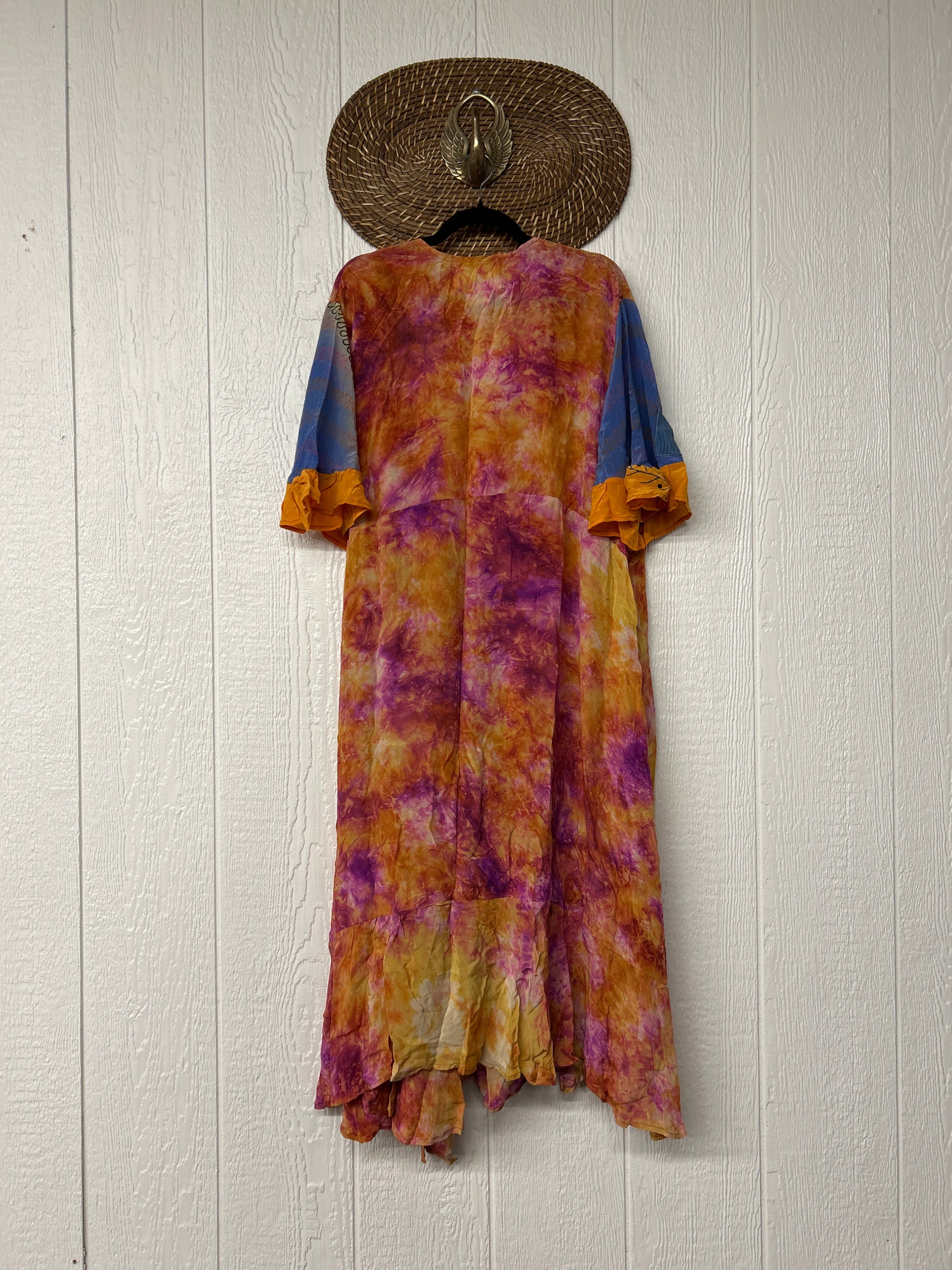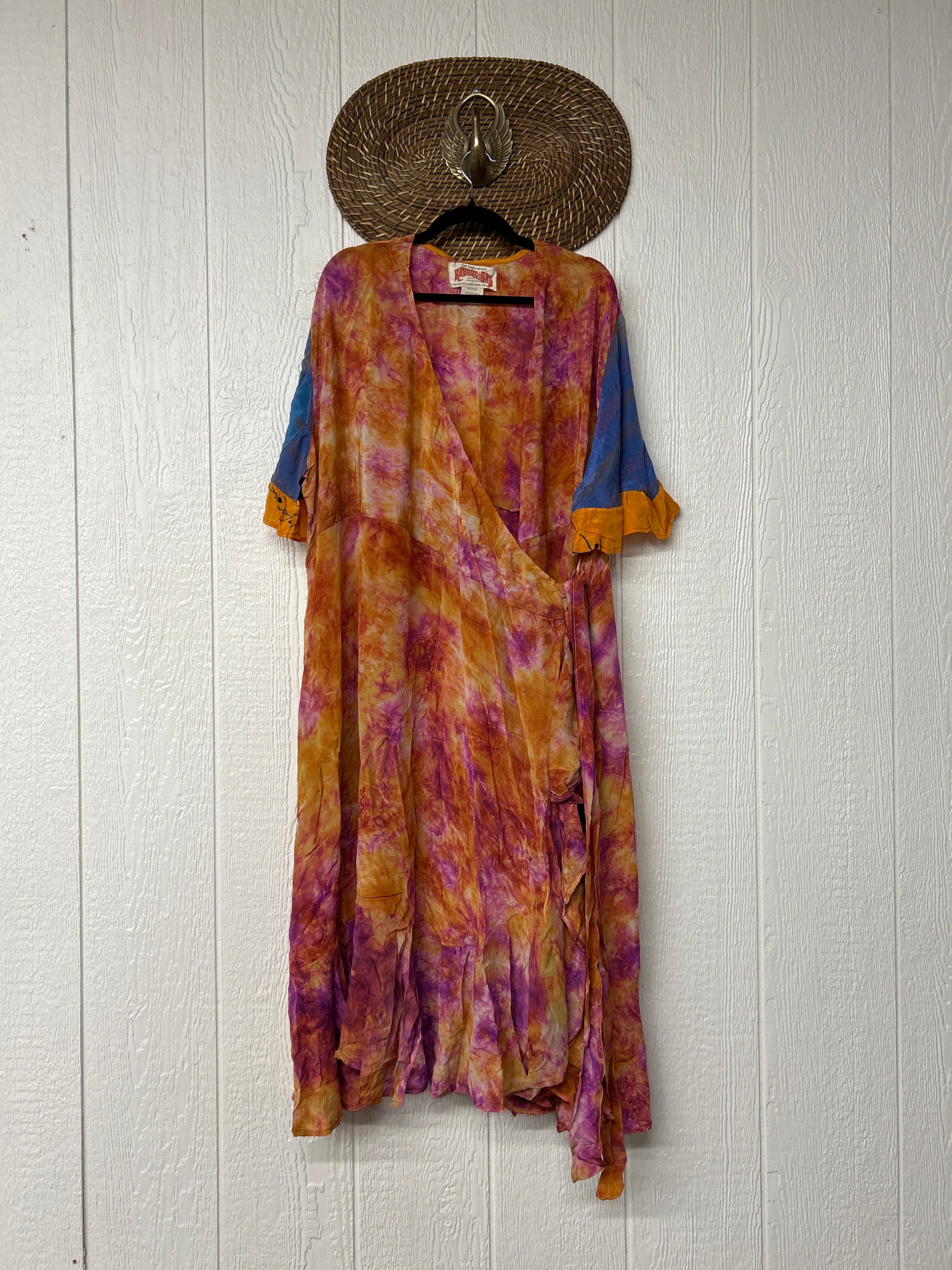 The Summer Flourish Wrap Dress is crafted from our ultra lux vintage crepe sari. Features short bell sleeves, ruffle details throughout and a built in sash belt which wraps around the body to make this beauty fully customizable for a wide range of sizes. You can also wear the Flourish open as a vibey kimono over your favorite outfit. We're obsessed!