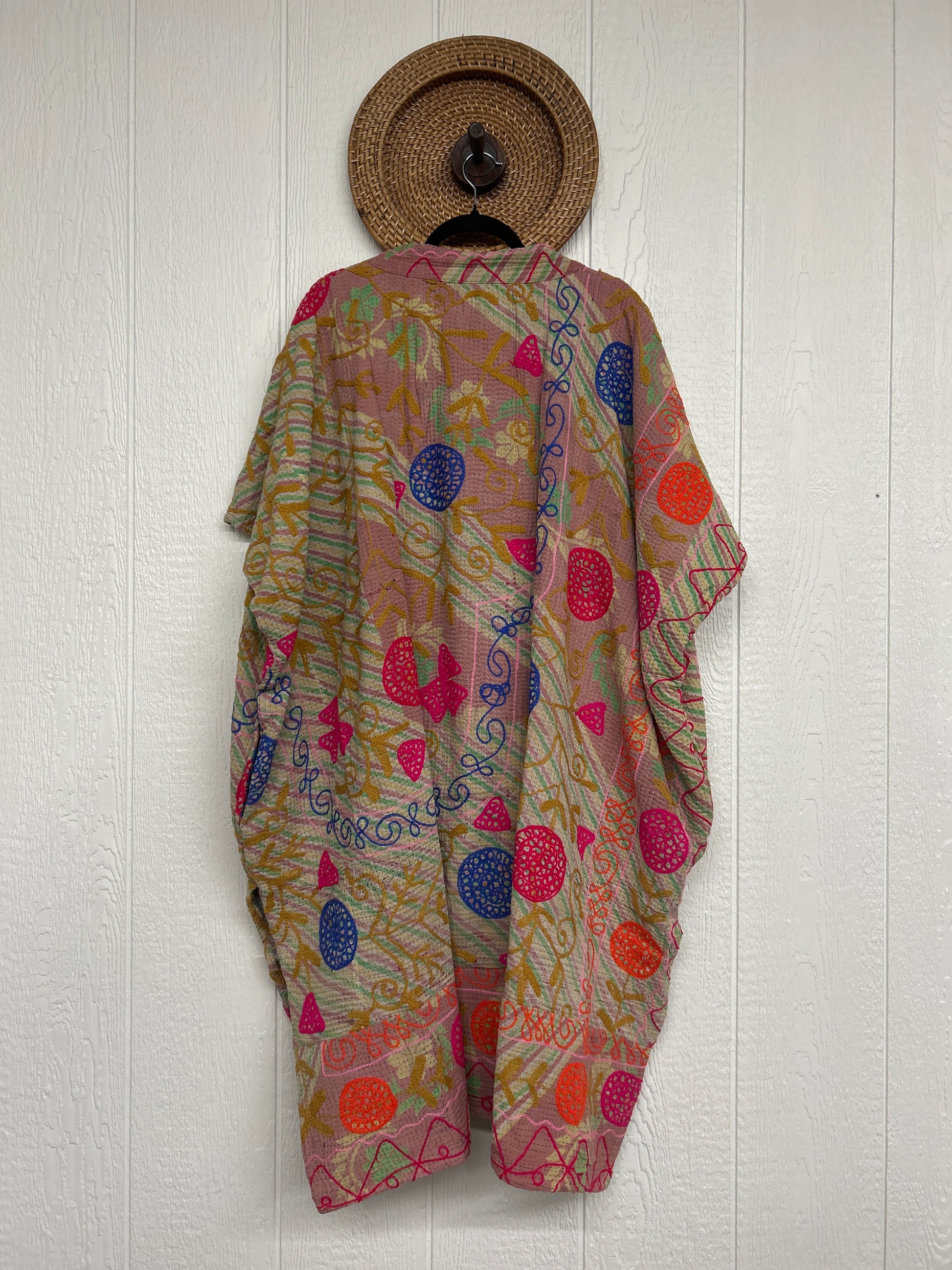 Crafted from hand embroidered fine kantha features a v neckline and interior pockets and side slits for extra dimension.