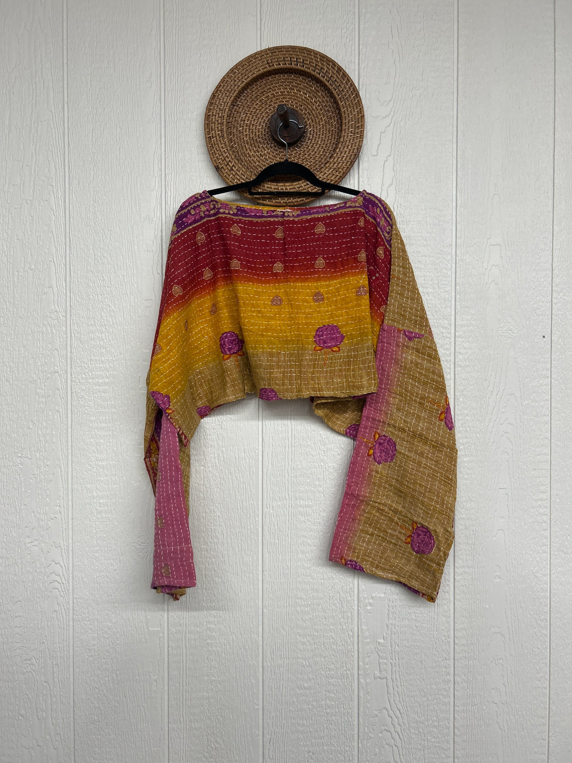 sari. Features long wide sleeves and a funky crop silhouette to wear with all your favorite KB bottoms.