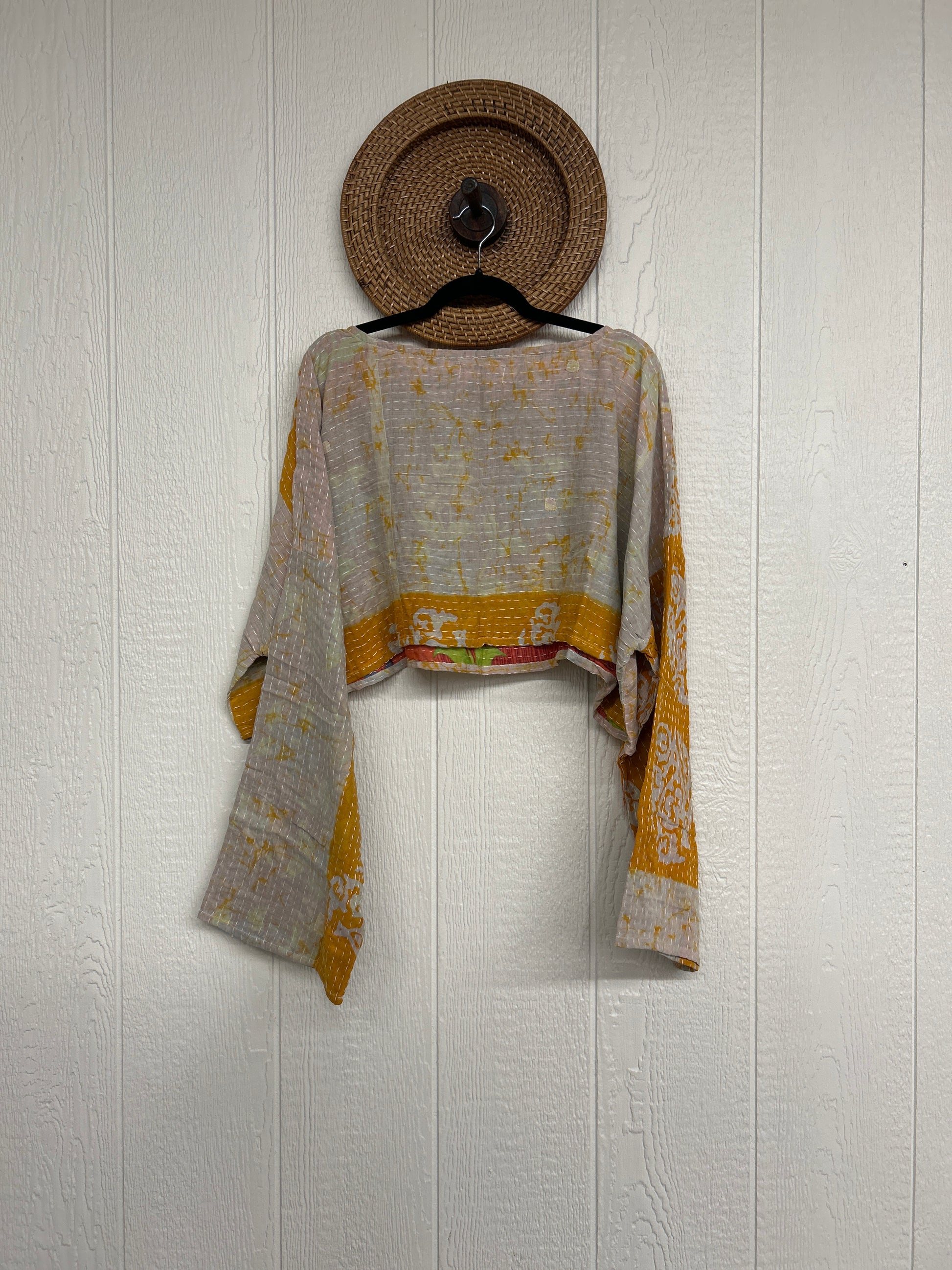 sari. Features long wide sleeves and a funky crop silhouette to wear with all your favorite KB bottoms.
