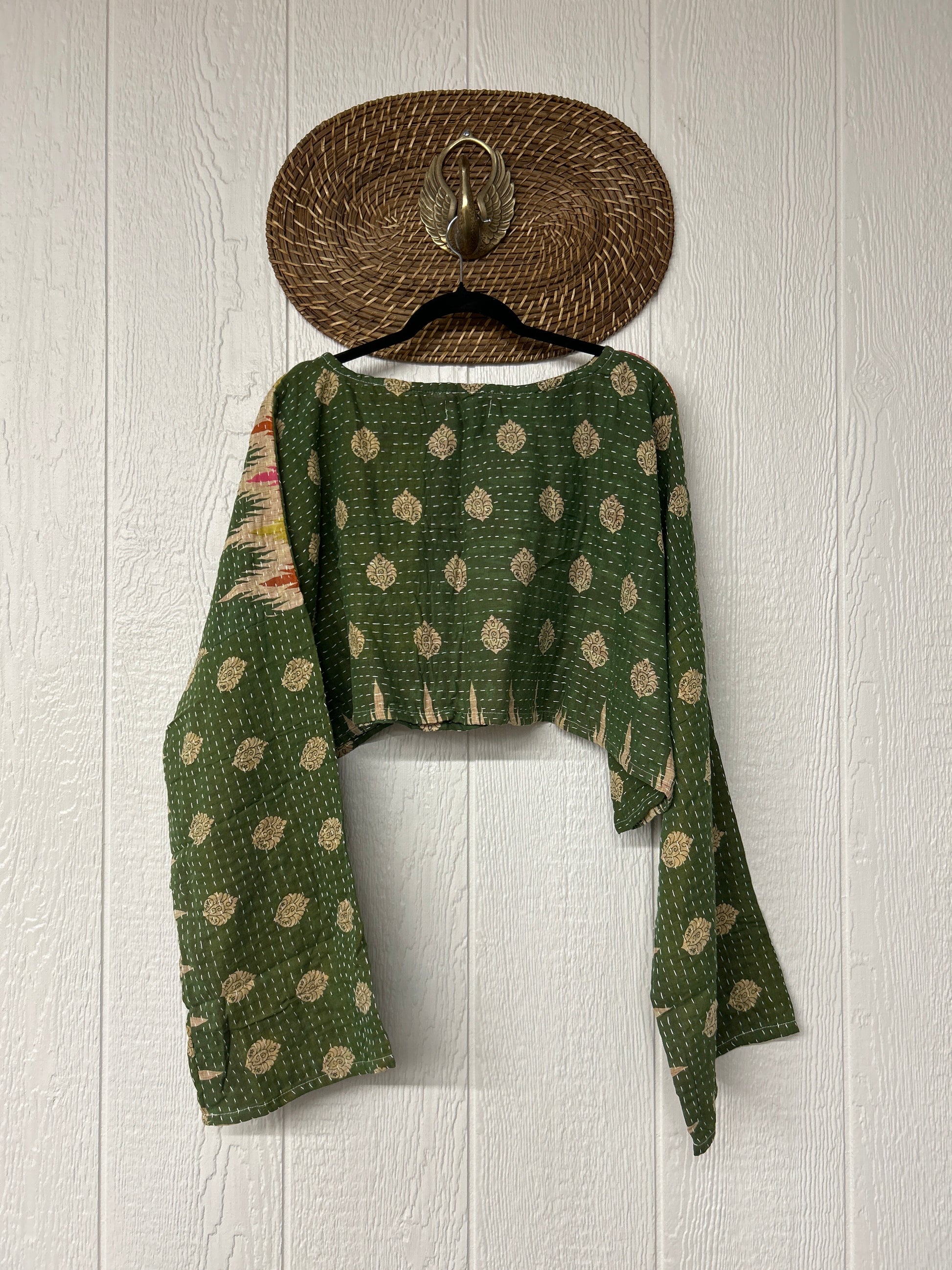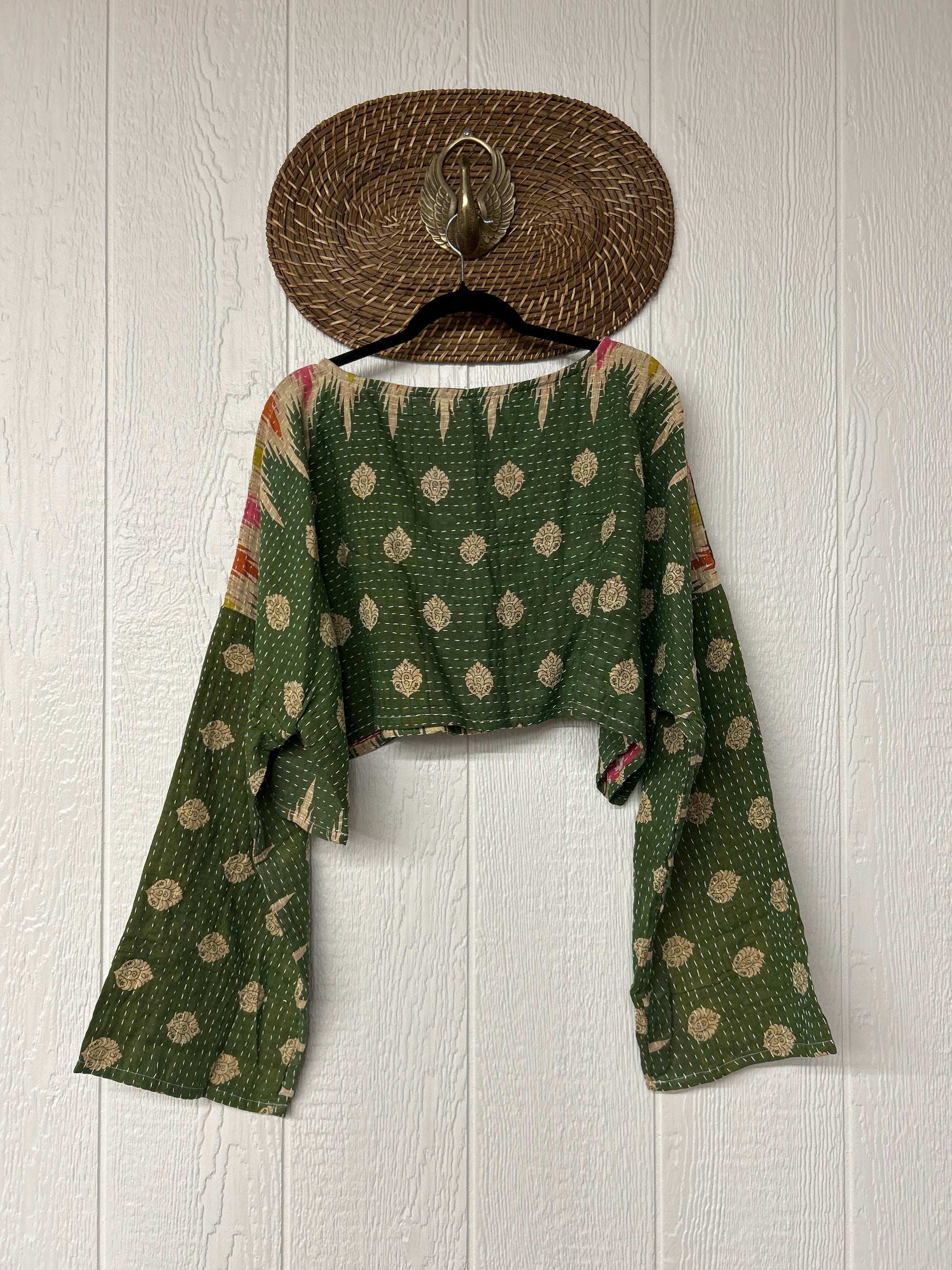 sari. Features long wide sleeves and a funky crop silhouette to wear with all your favorite KB bottoms.