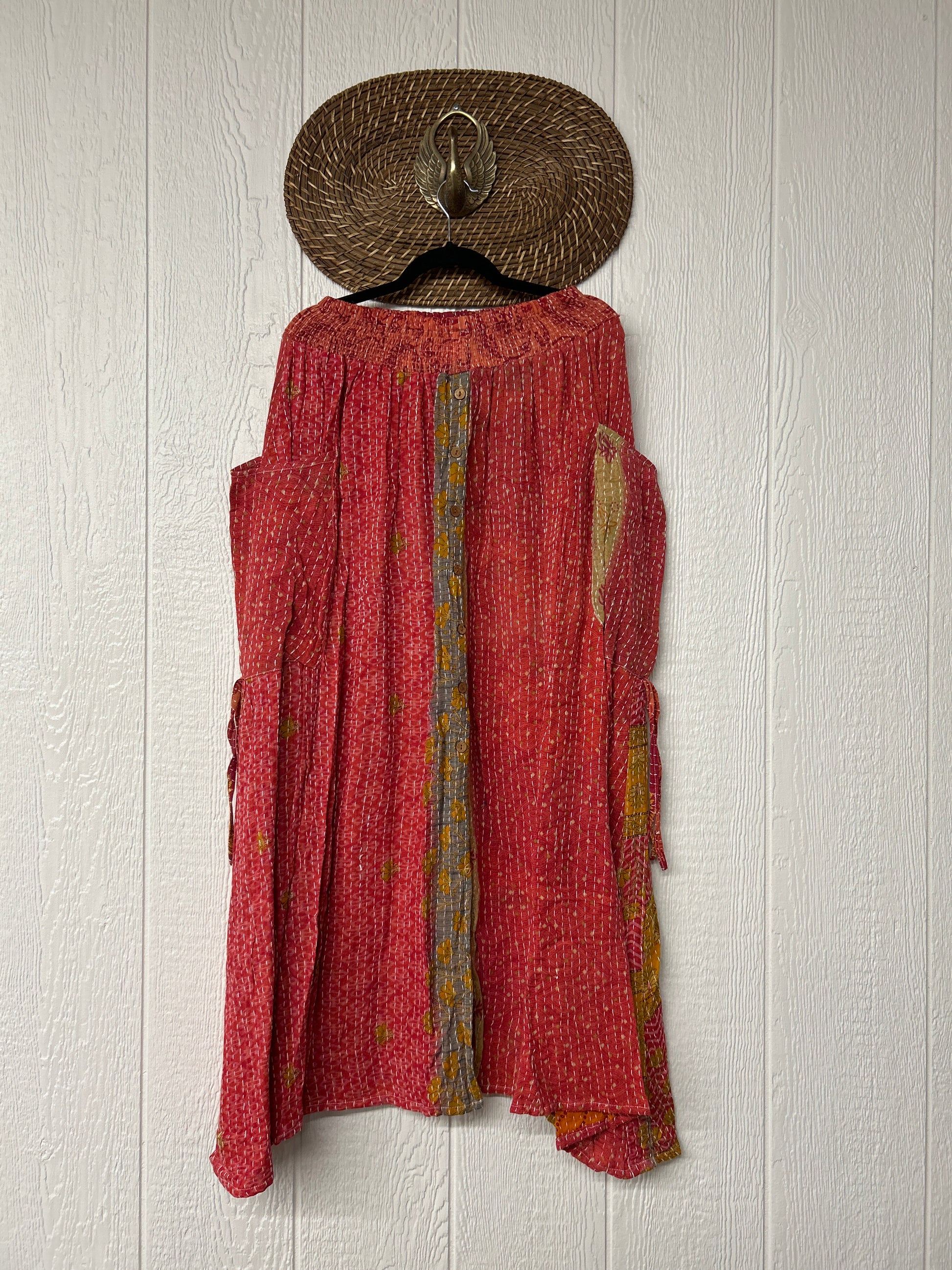 Crafted from kantha stitched vintage cotton sari this absolute dream features slouchy side pockets with a butterfly drawstring to cinch the sides, a button front skirt and a stretchy free size waist.