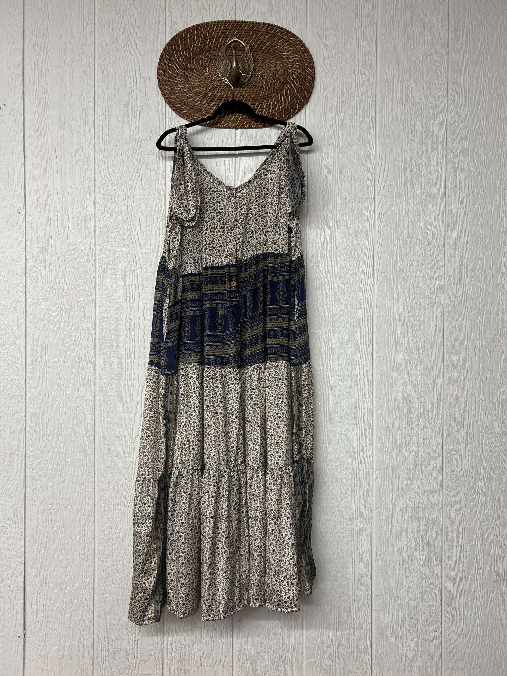 This femine and floaty tiered jumpsuit features tie straps for full customization and pockets.