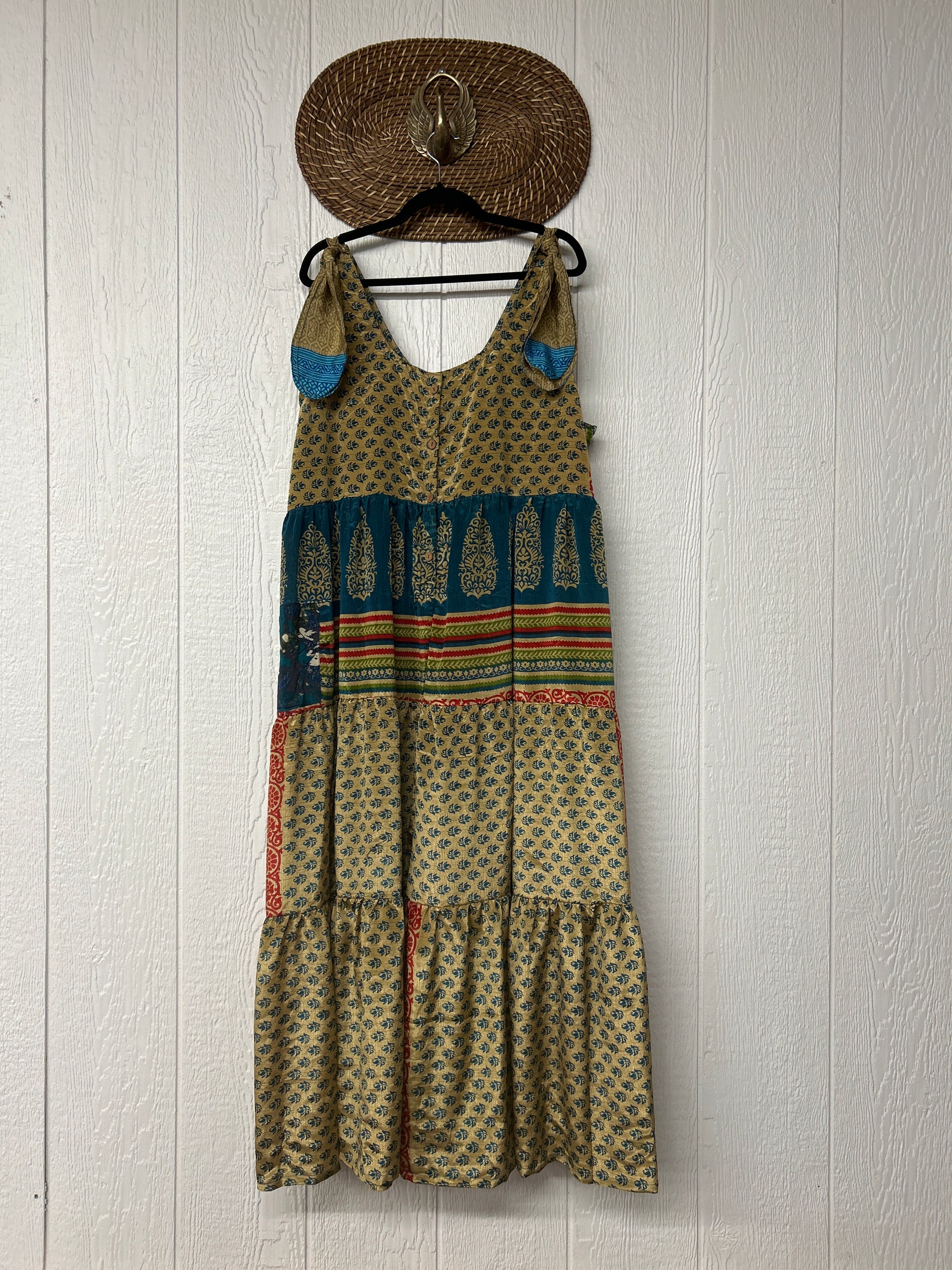 Our Celeste jumpsuit is made from our ultra luxe vintage rasgulla sari.