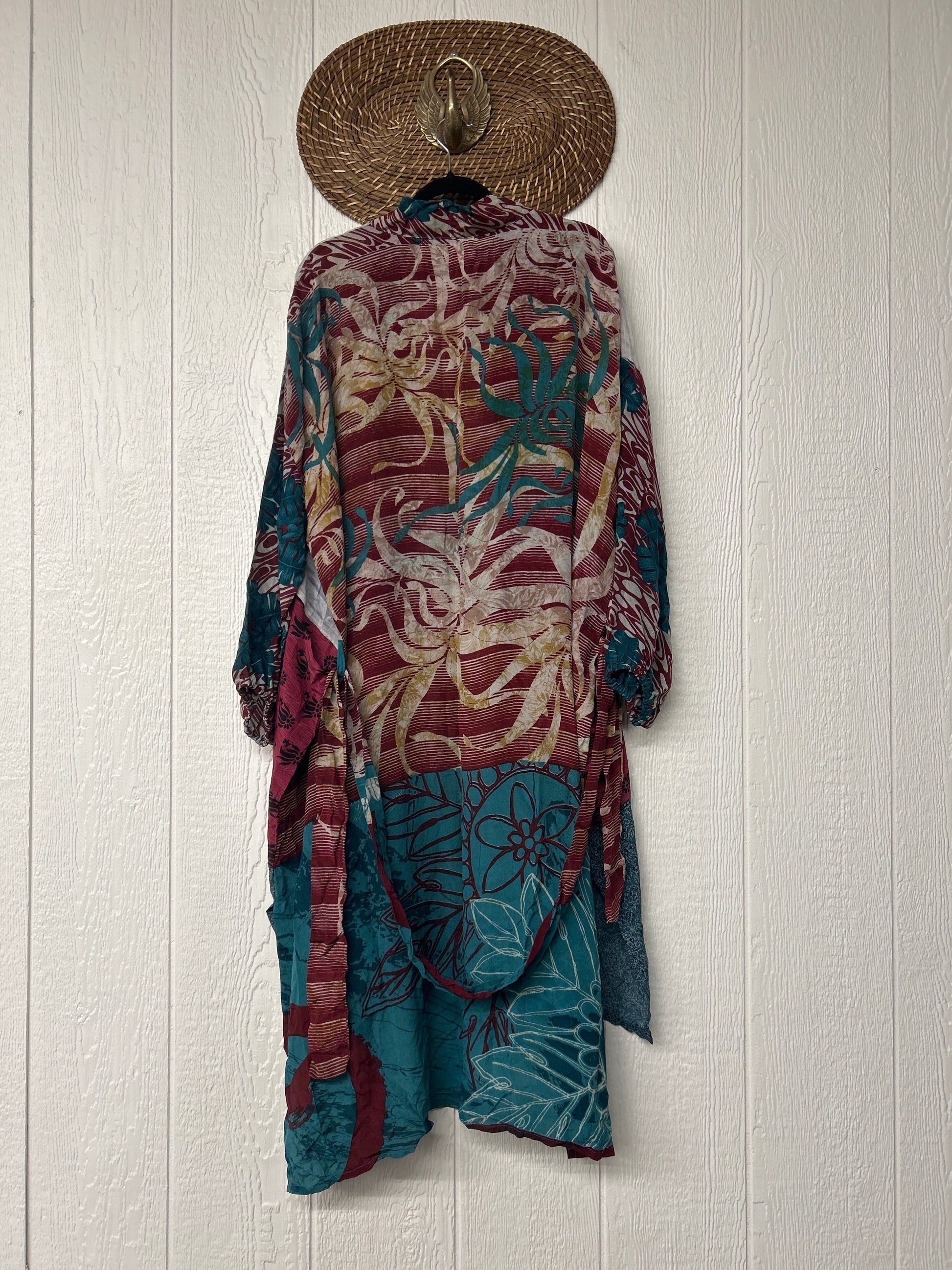 Crepe Dusters are beautiful, flowy, midi-length kimonos made from our ultra lux vintage crepe sari. They feature balloon sleeves with elastic at the wrist, 2 slouchy pockets, and a sash. They are one of our favorite layering pieces EVER.