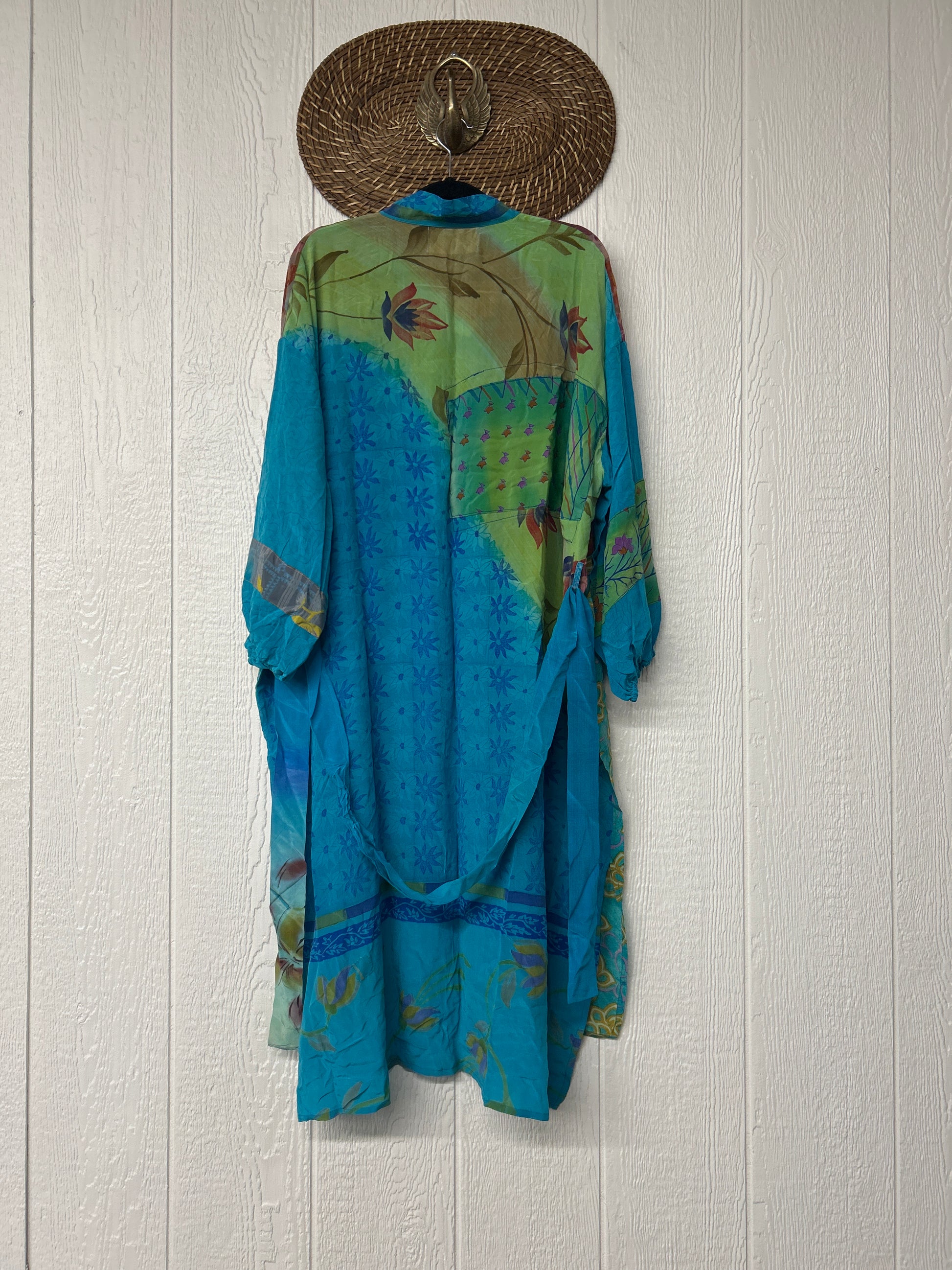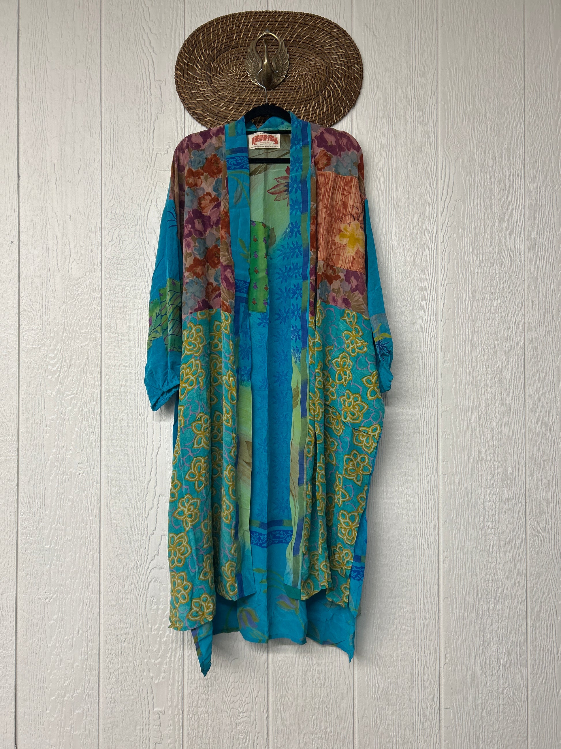 Crepe Dusters are beautiful, flowy, midi-length kimonos made from our ultra lux vintage crepe sari. They feature balloon sleeves with elastic at the wrist, 2 slouchy pockets, and a sash. They are one of our favorite layering pieces EVER.